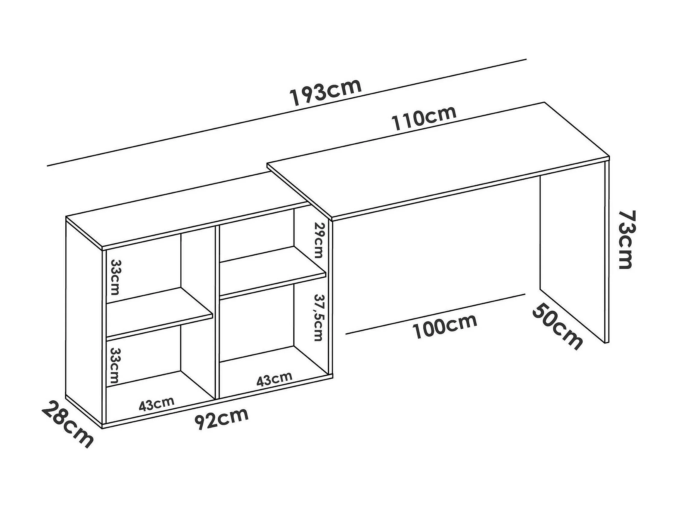 Secretária Dkea, Secretária multiposições para escritório ou quarto, Mesa de estudo de canto com prateleiras, 121x96h74 cm, Carvalho