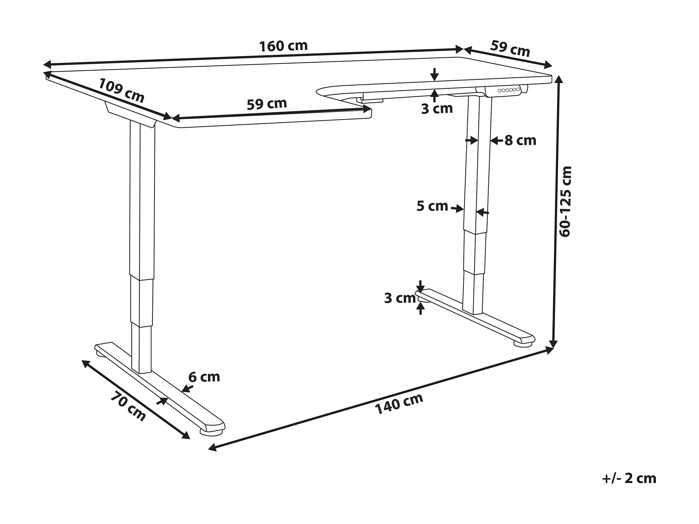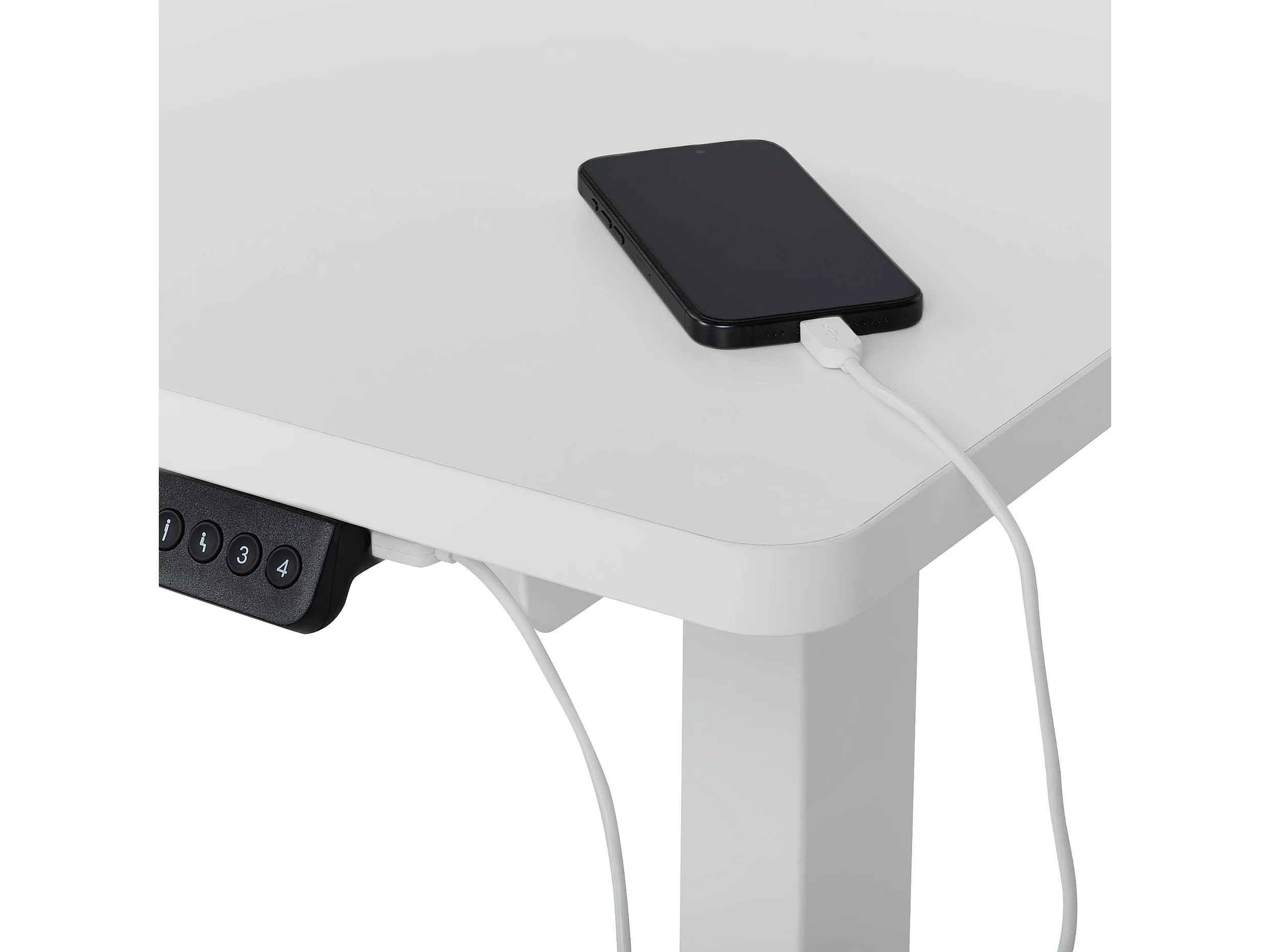 Secretária elevatória eletricamente ajustável de canto esquerdo branca 160 x 59 cm DESTINES