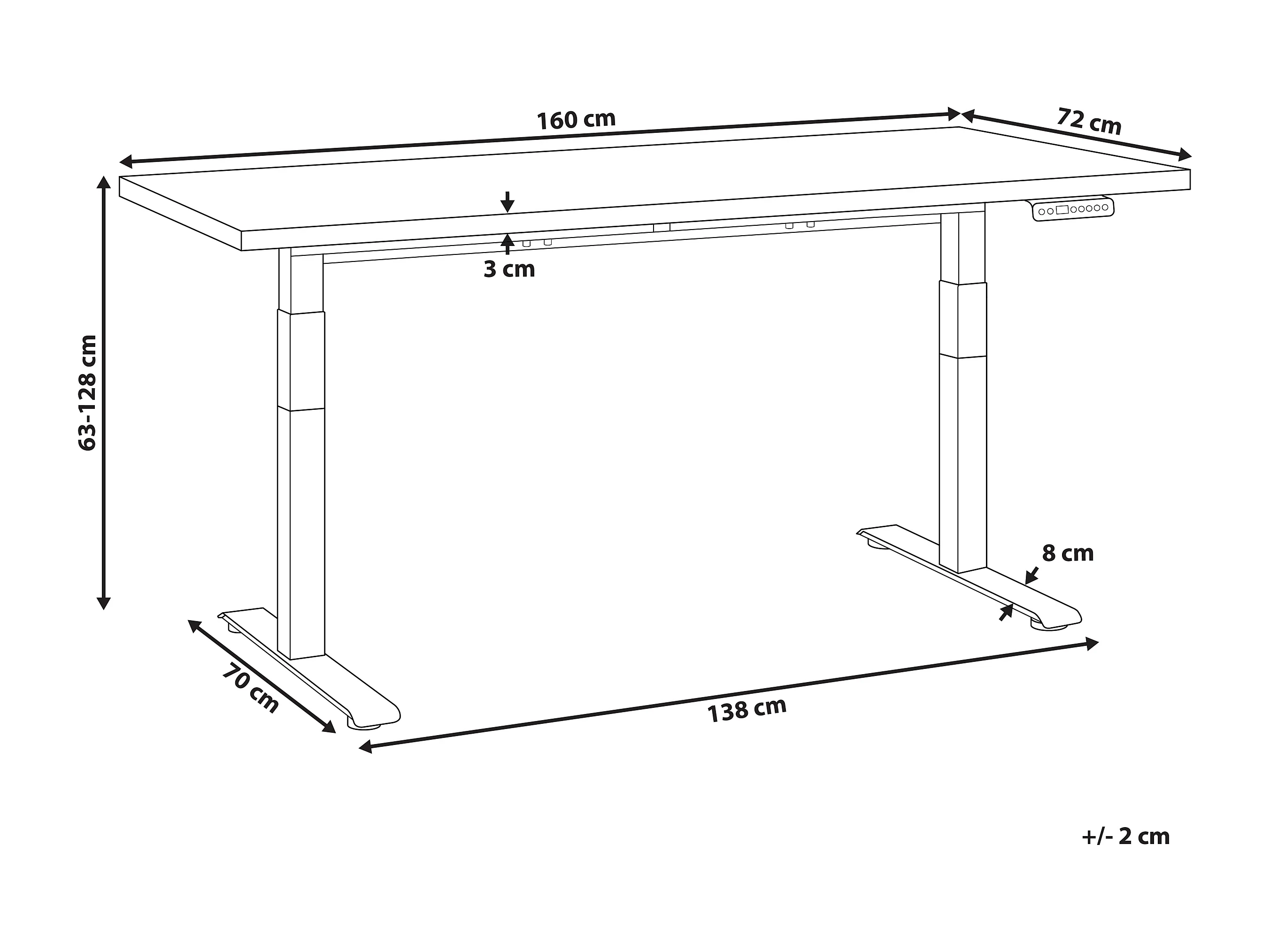 Secretária elevatória eletricamente ajustável preta e branca 160 x 72 cm DESTINES
