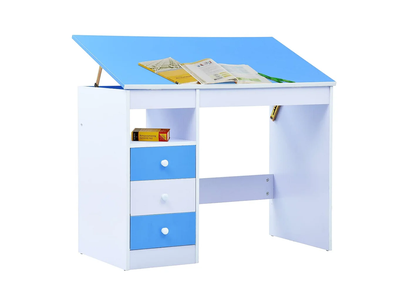 Secretária de canto com 2 gavetas 135x85cm Luka Azul Suave | Pés em Madeira de Freixo | Lado Esquerdo