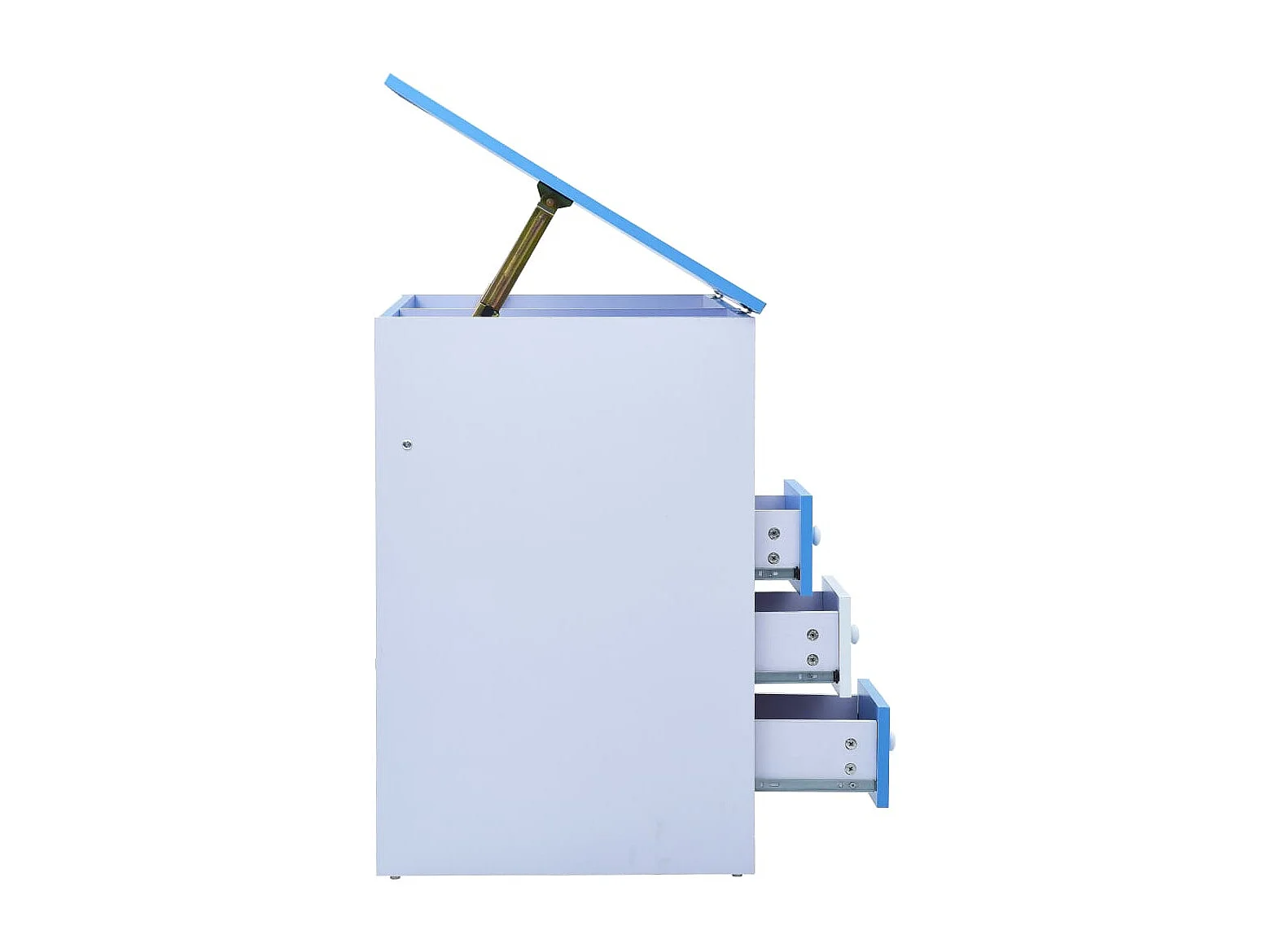 Secretária de canto com gaveta 115x85cm Luka Azul Suave | Pés em Madeira de Freixo | Lado Direito