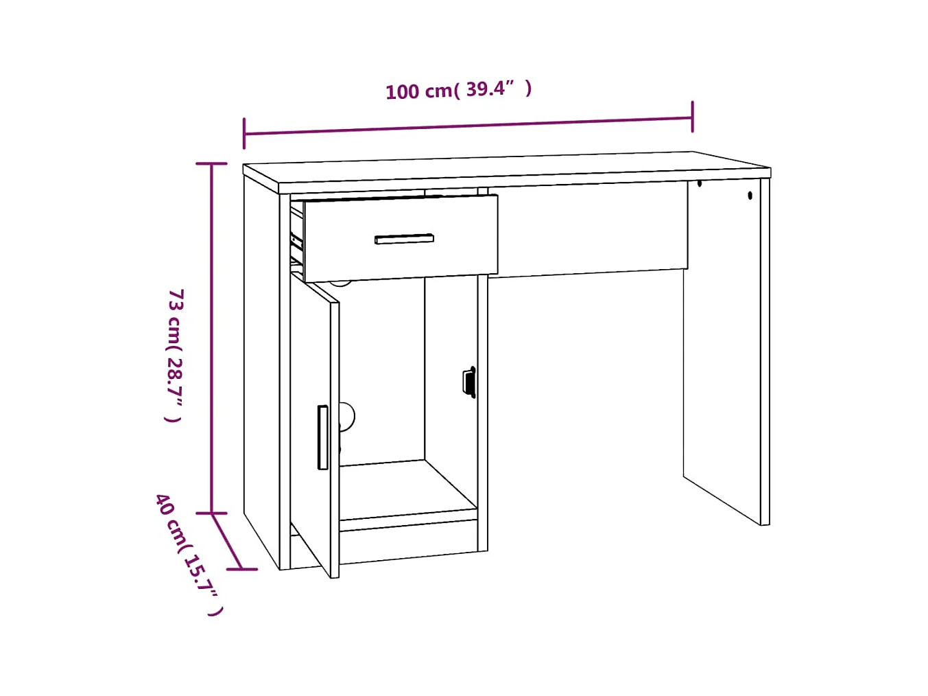 Mesa com gaveta e armário 100x40x73 cm carvalho