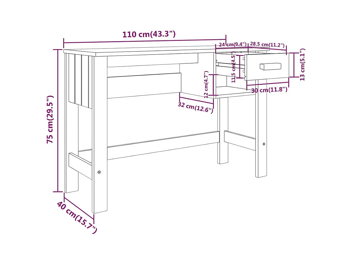 Secretária 110x50x75 cm madeira de pinho maciça cinzento
