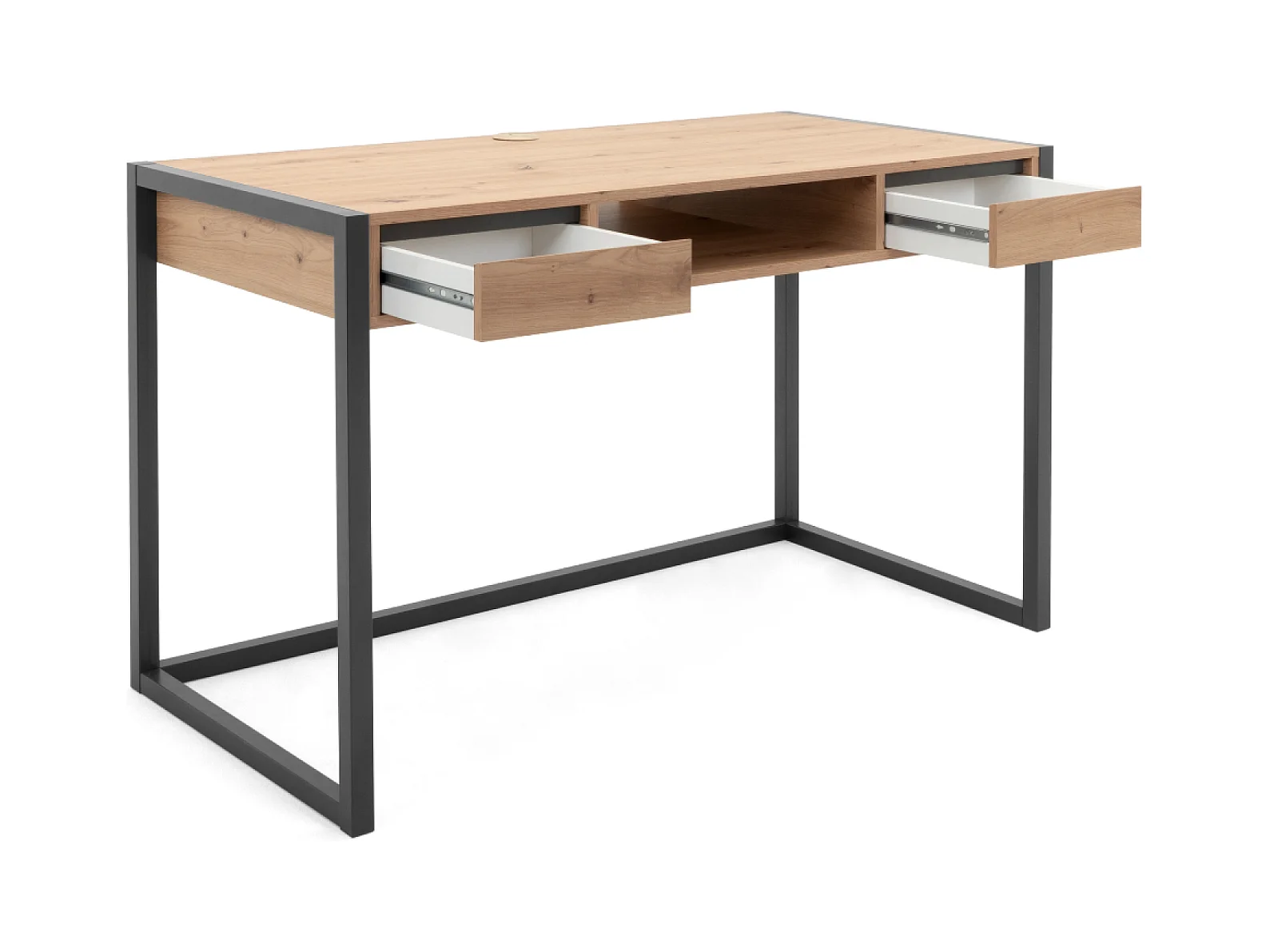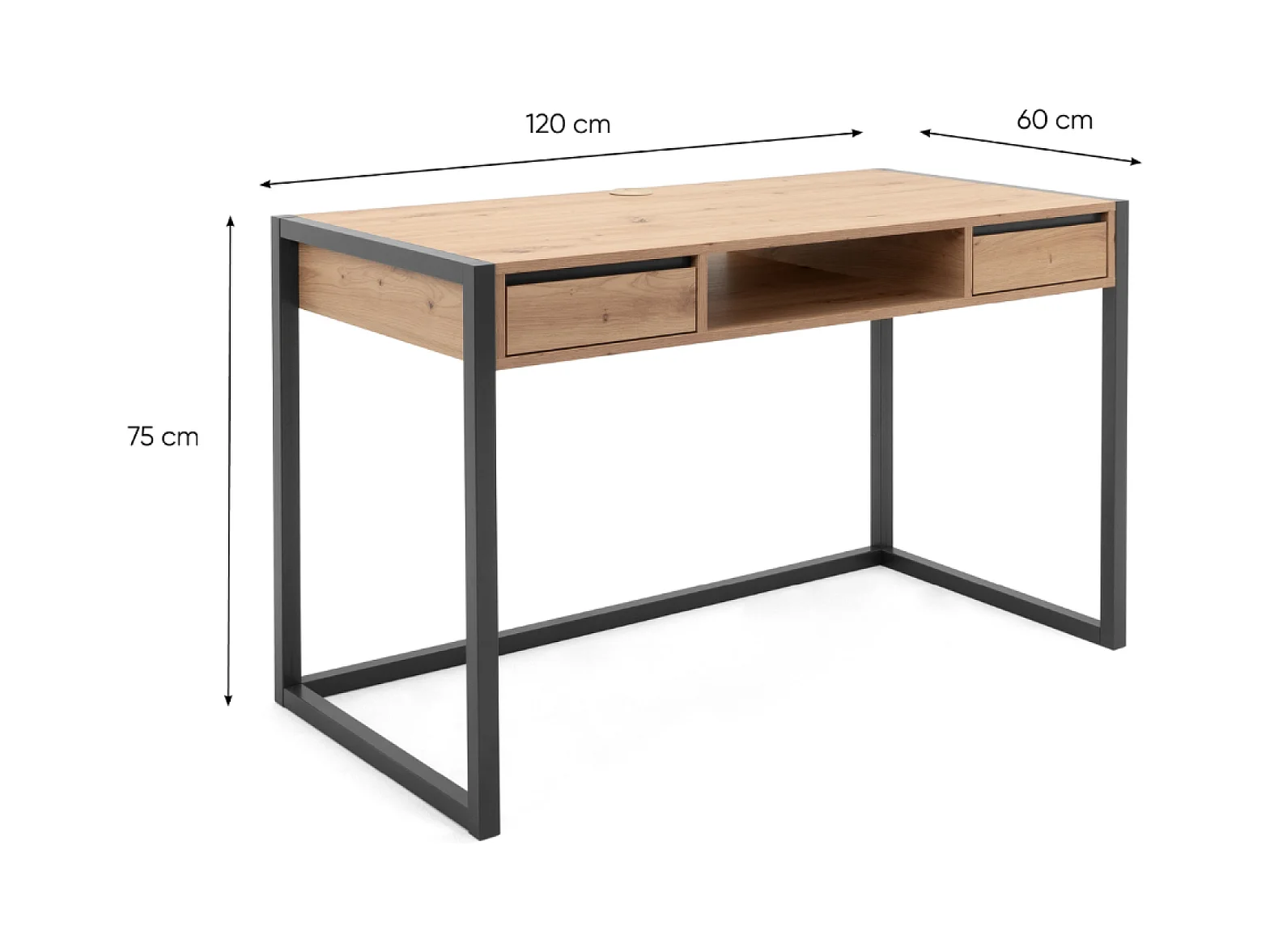 Secretária modelo NATURAL, cor carvalho-nórdico de 54mm de espessura-Pernas de metal branco 120x60x73cm