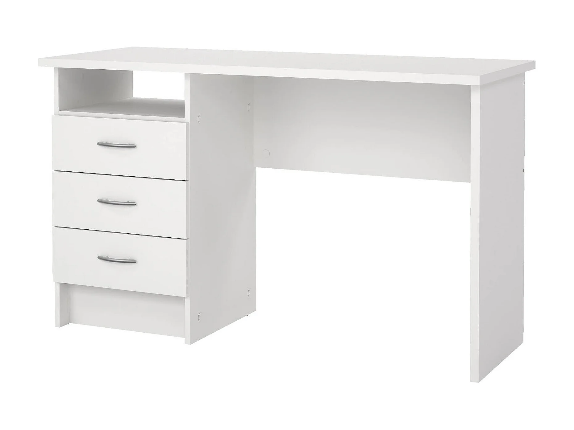 Secretária linear com três gavetas, cor branca, medidas 120 x 72 x 48 cm