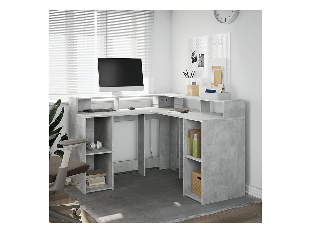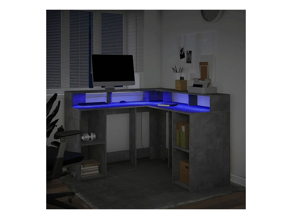 Secretária luzes LED 152x152x91 cm deriv. madeira cinza cimento