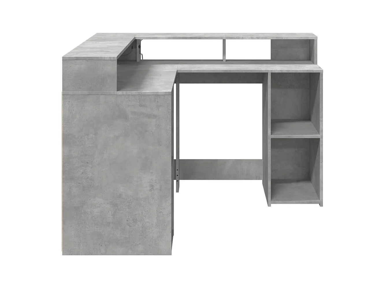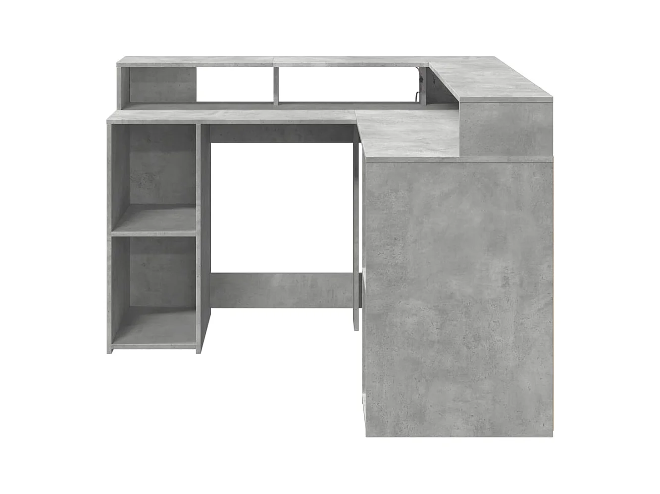 Secretária luzes LED 130x130x91cm deriv. madeira cinza cimento