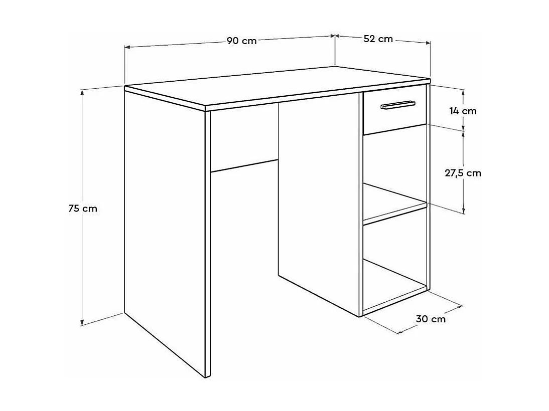 Secretária Moderna "Focus" com Gaveta e Prateleiras - 90 x 75 x 55 cm - Branca