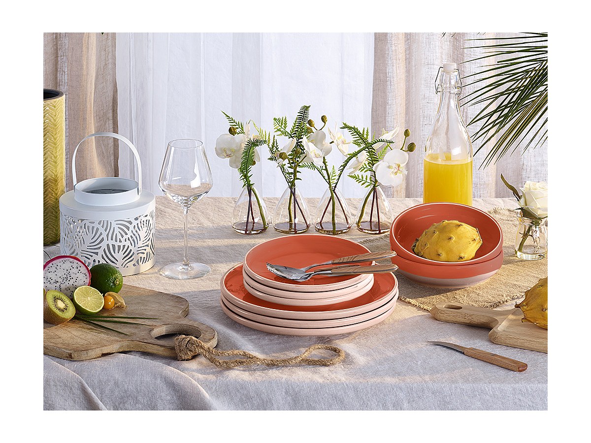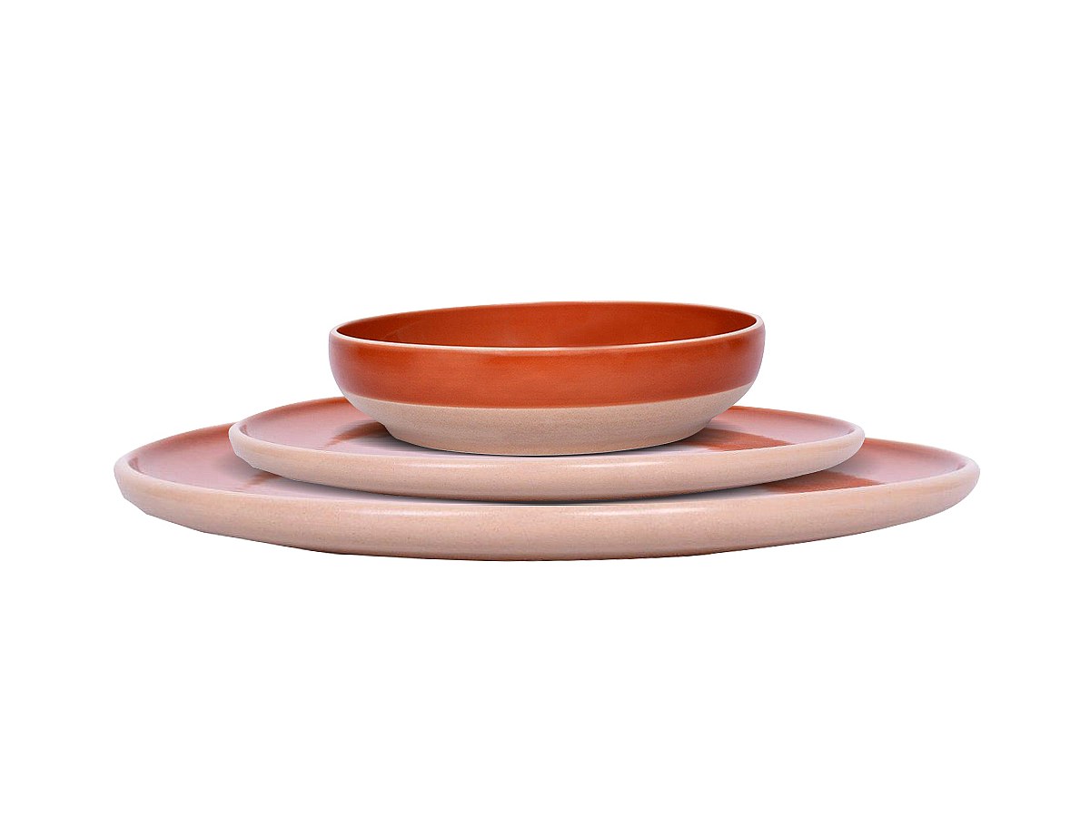 Serviço de louça 12 peças com acabamento brilhante - Faiança - Terracota - SATIS