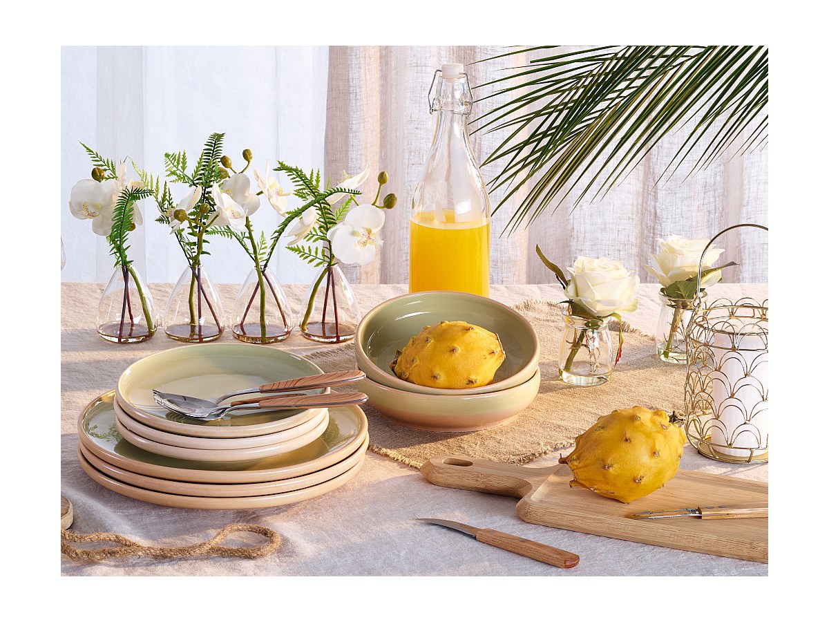 Serviço de louça 12 peças com acabamento brilhante - Faiança - Verde-claro - SATIS
