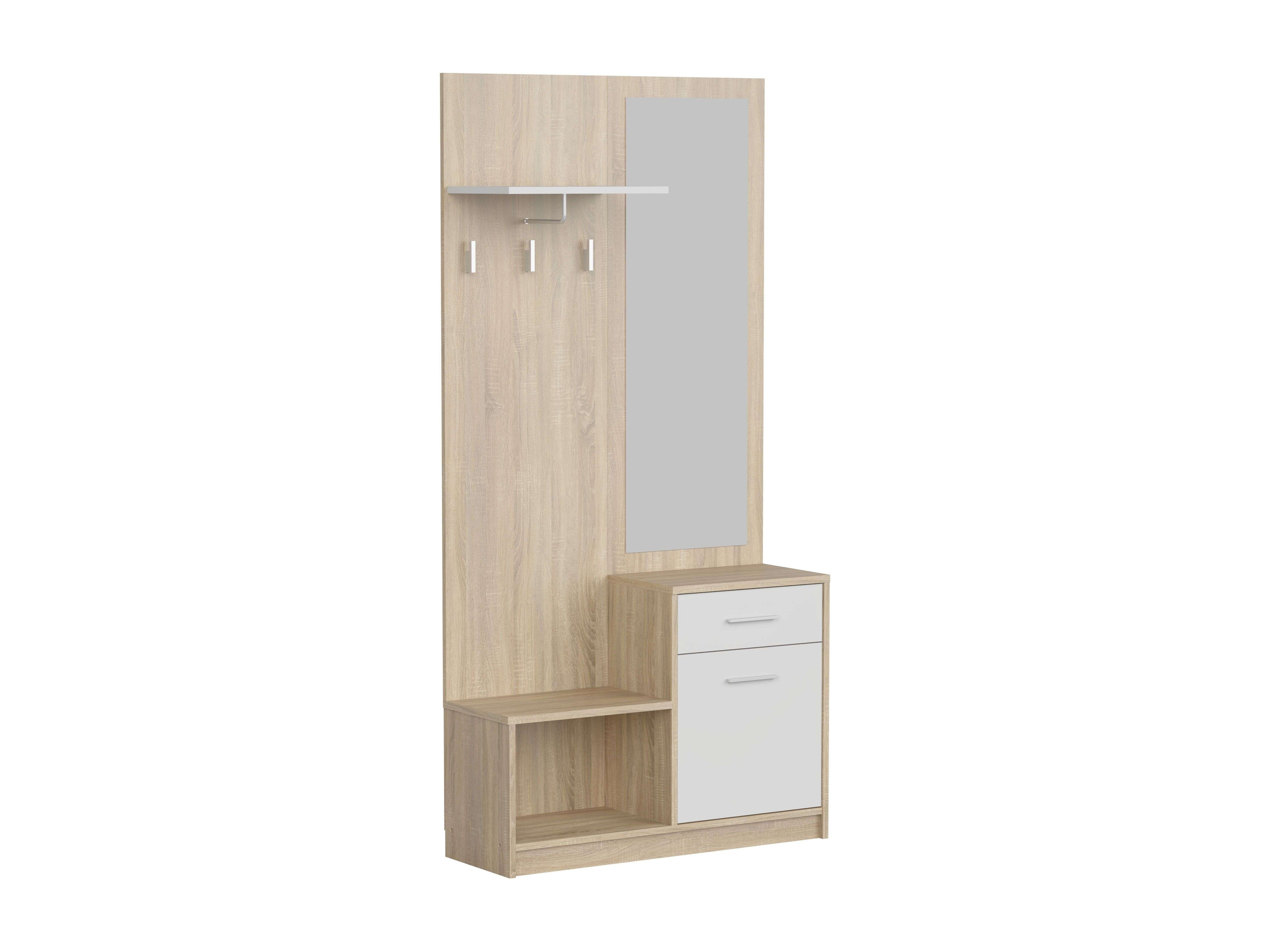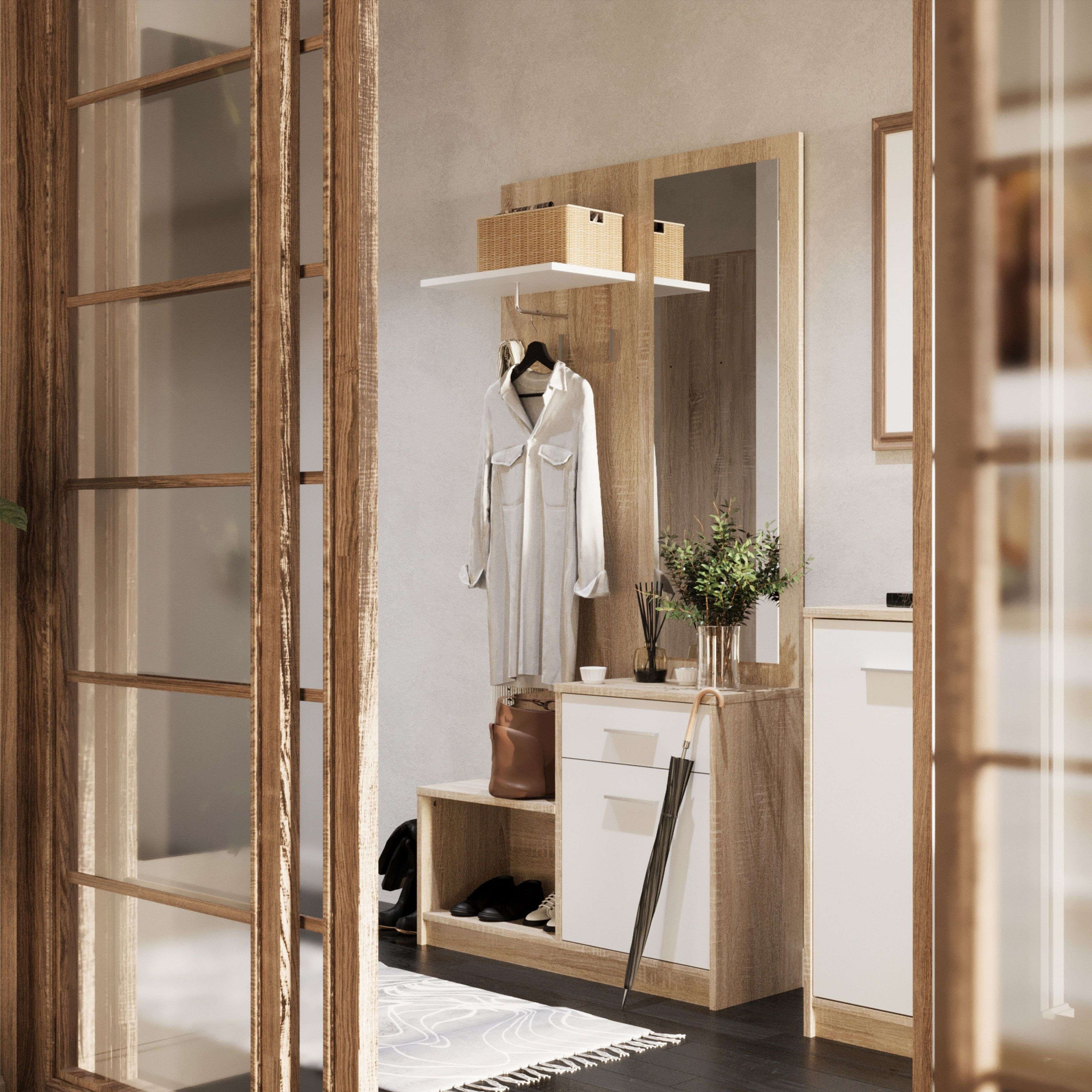 Sett Móveis de Corredor Espelho 1 Gaveta 1 Porta Prateleira Oca Carvalho Branco 90 cm