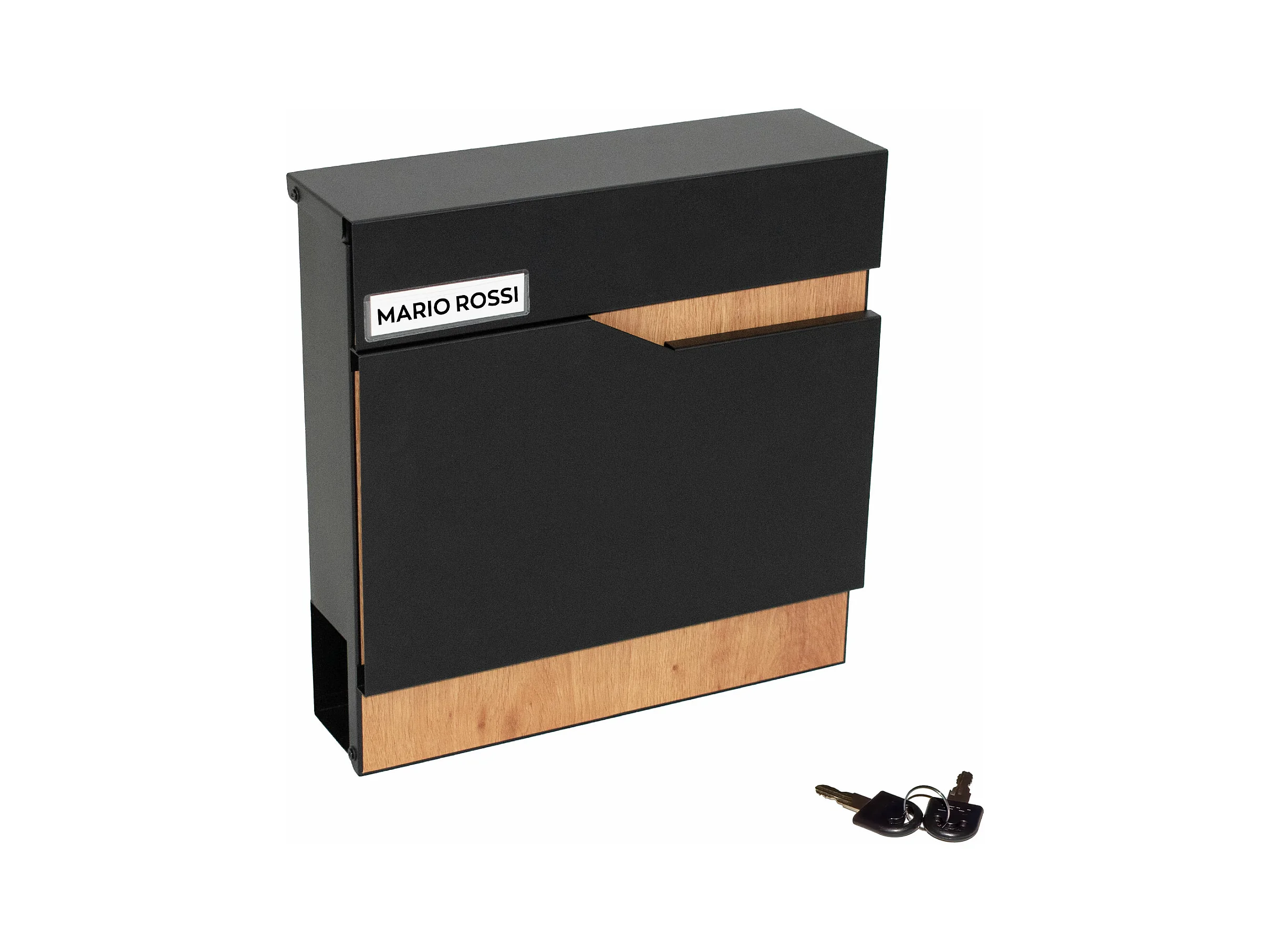 SHIMA - Bandeja de papel montada na parede 37x37x11 cm com suporte para revista em madeira e aço preto
