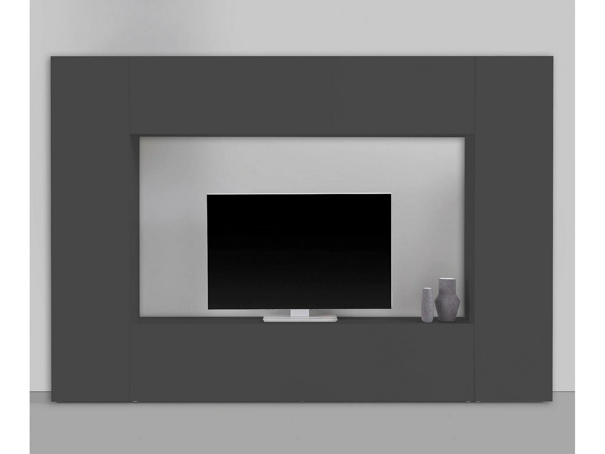 Sistema de parede Dgirm, conjunto de sala de TV com 4 portas, móveis de sala multiuso, 100% Fabricado na Itália, 260x30h180 cm, Antracite