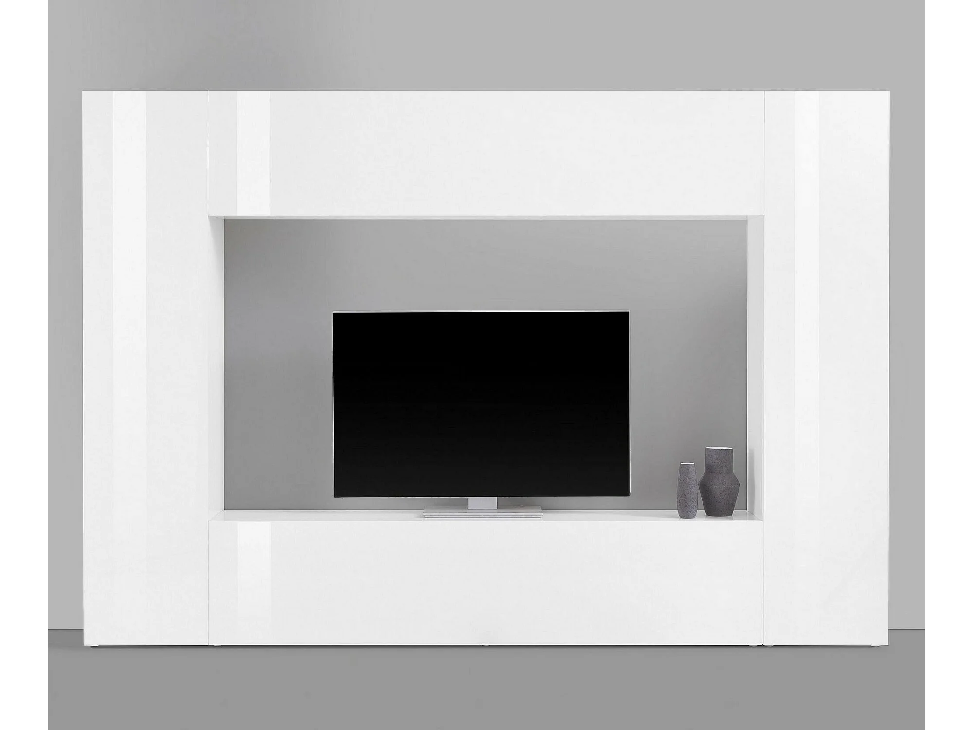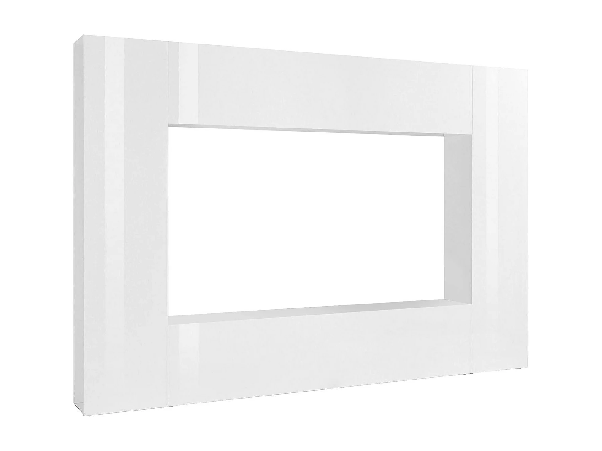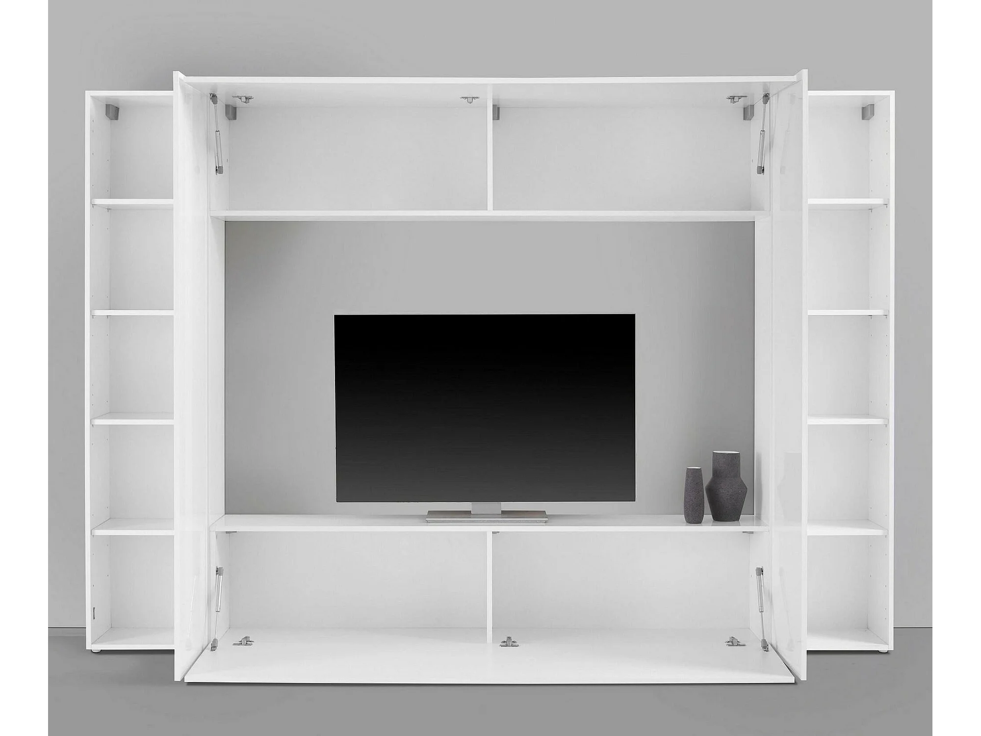 Sistema de parede Dgirm, conjunto de sala de TV com 4 portas, móveis de sala multiuso, 100% fabricado na Itália, 260x30h180 cm, branco brilhante