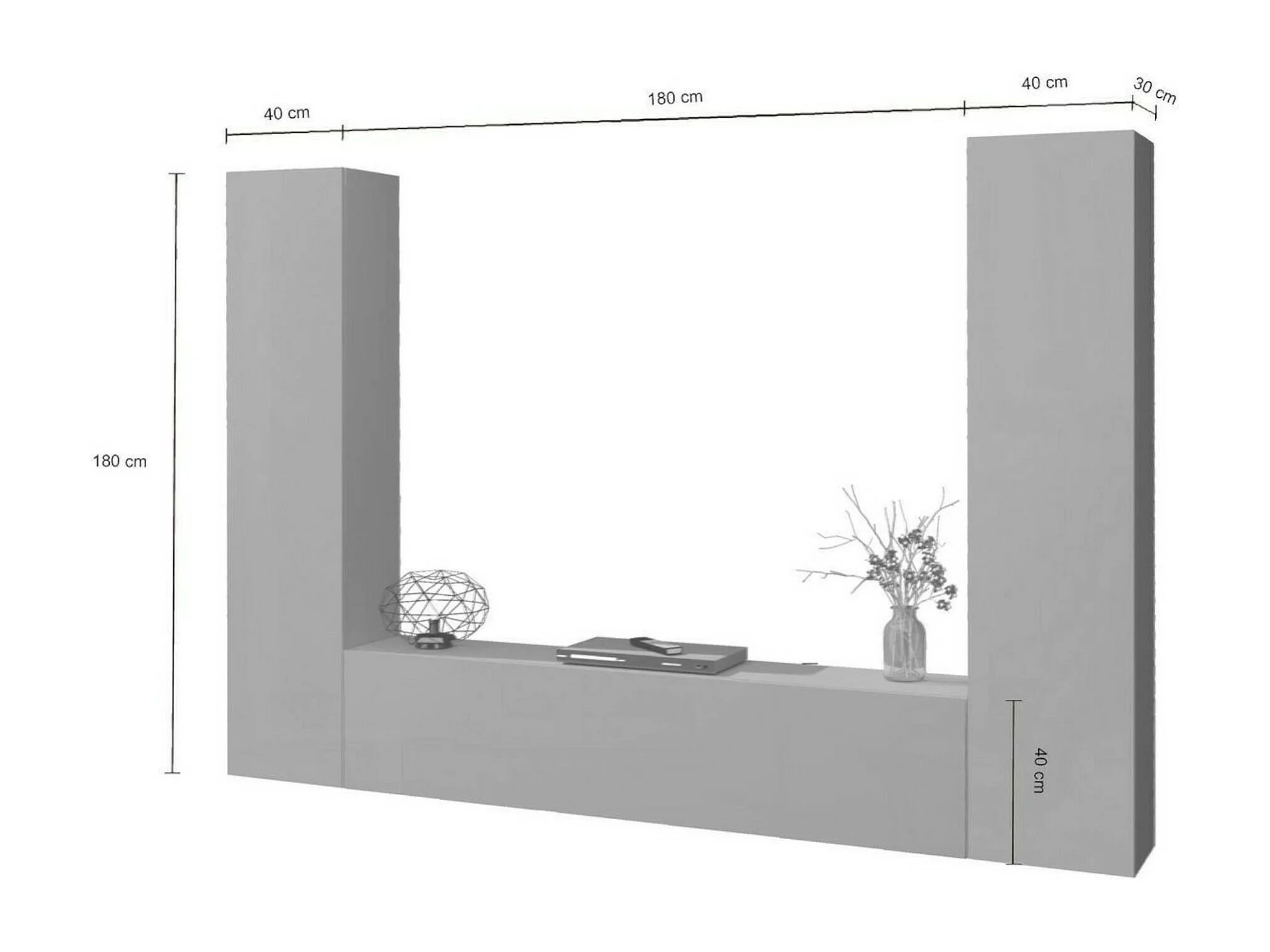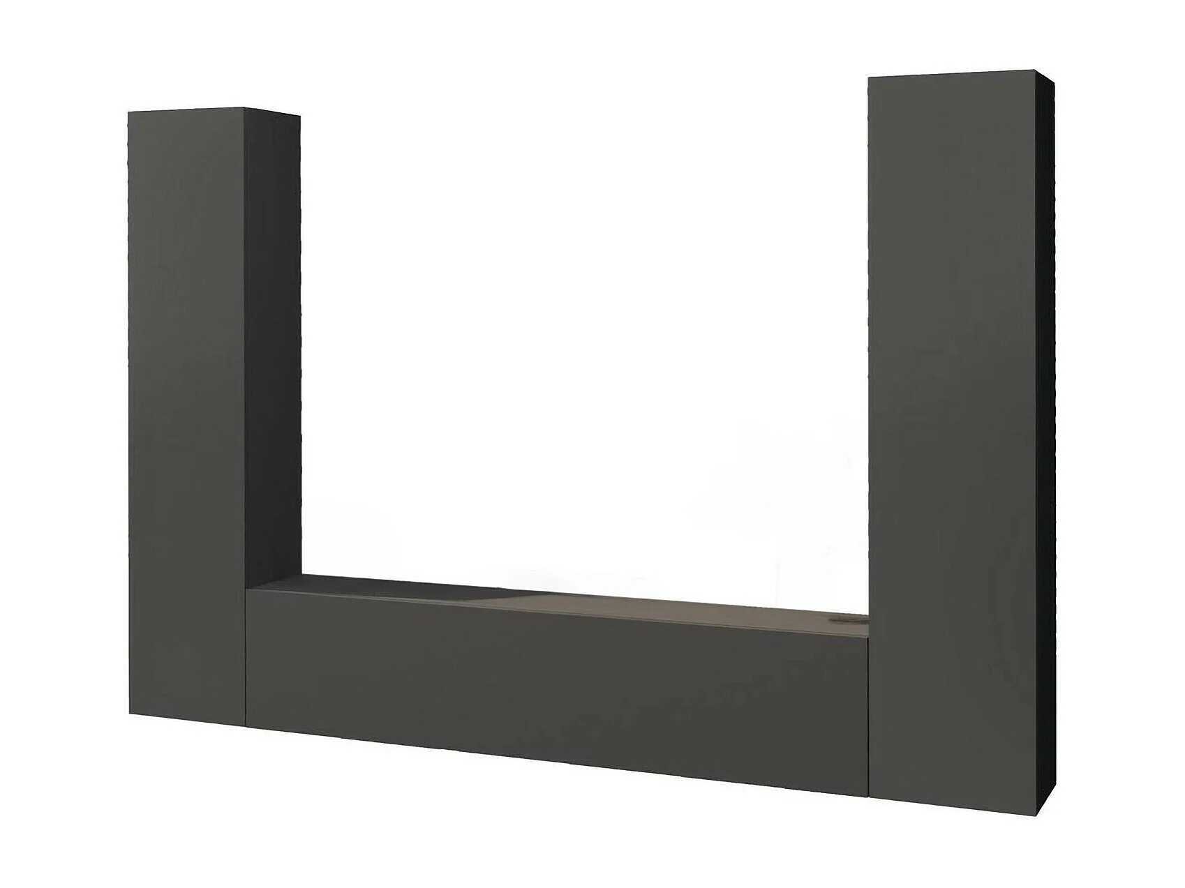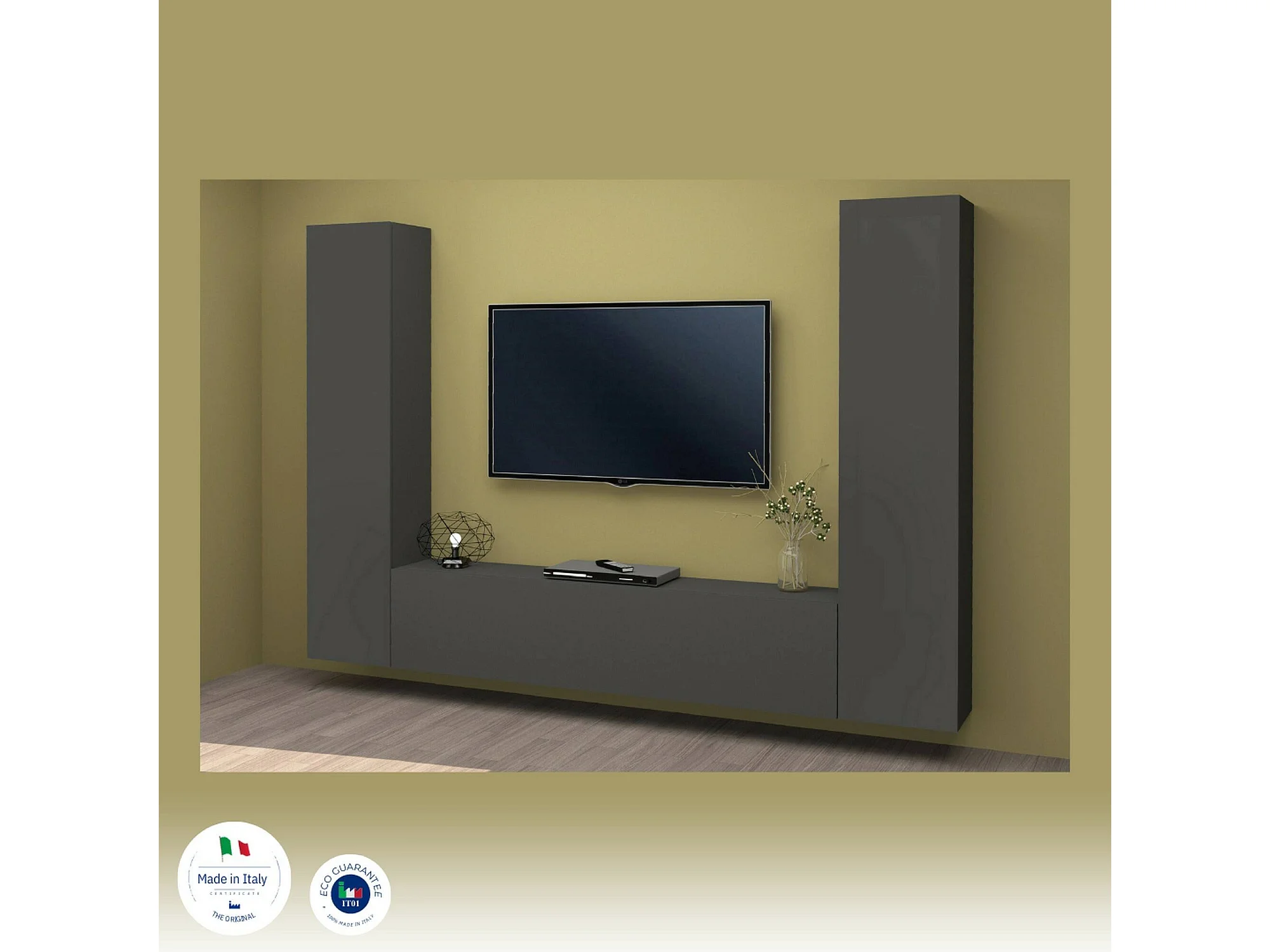 Sistema de parede Giordano, conjunto de sala de TV com 3 portas, móveis de sala multiuso, 100% Fabricado na Itália, 260x30h180 cm, Antracite