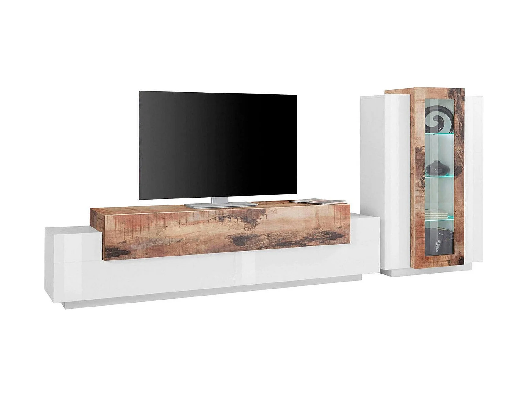 Sistema de parede Mirko, conjunto de sala de TV, móveis de sala multiuso, 100% fabricado na Itália, 280x45h121 cm, branco brilhante e bordo