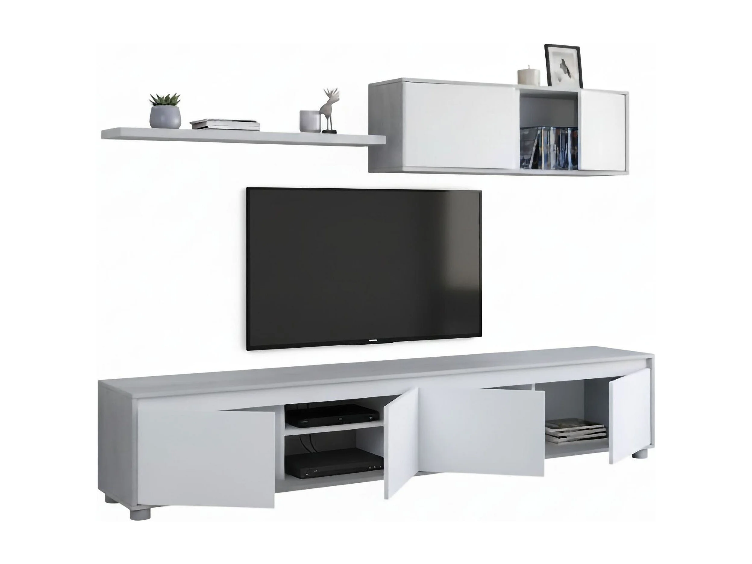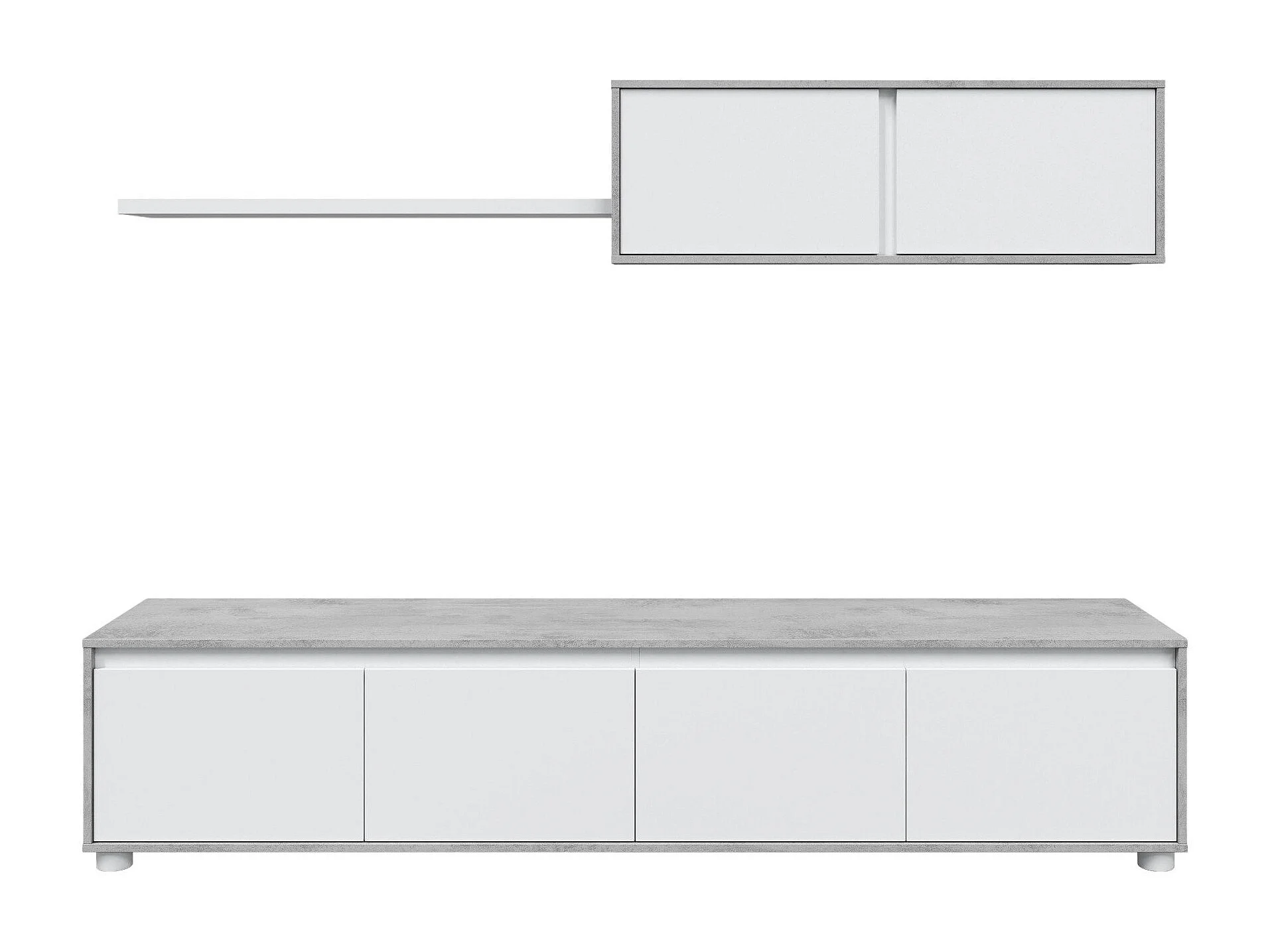 Sistema de parede Savannah, móvel de sala de TV, composição de conjunto de sala, conjunto de sala com móvel de parede, 200x41h43 cm, Branco e Cimento