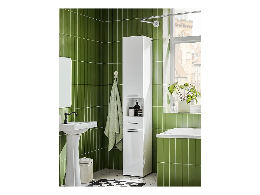 Armário WC 30x30x100 cm derivados de madeira branco brilhante