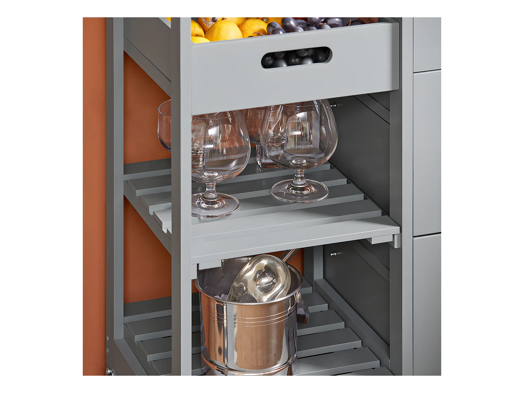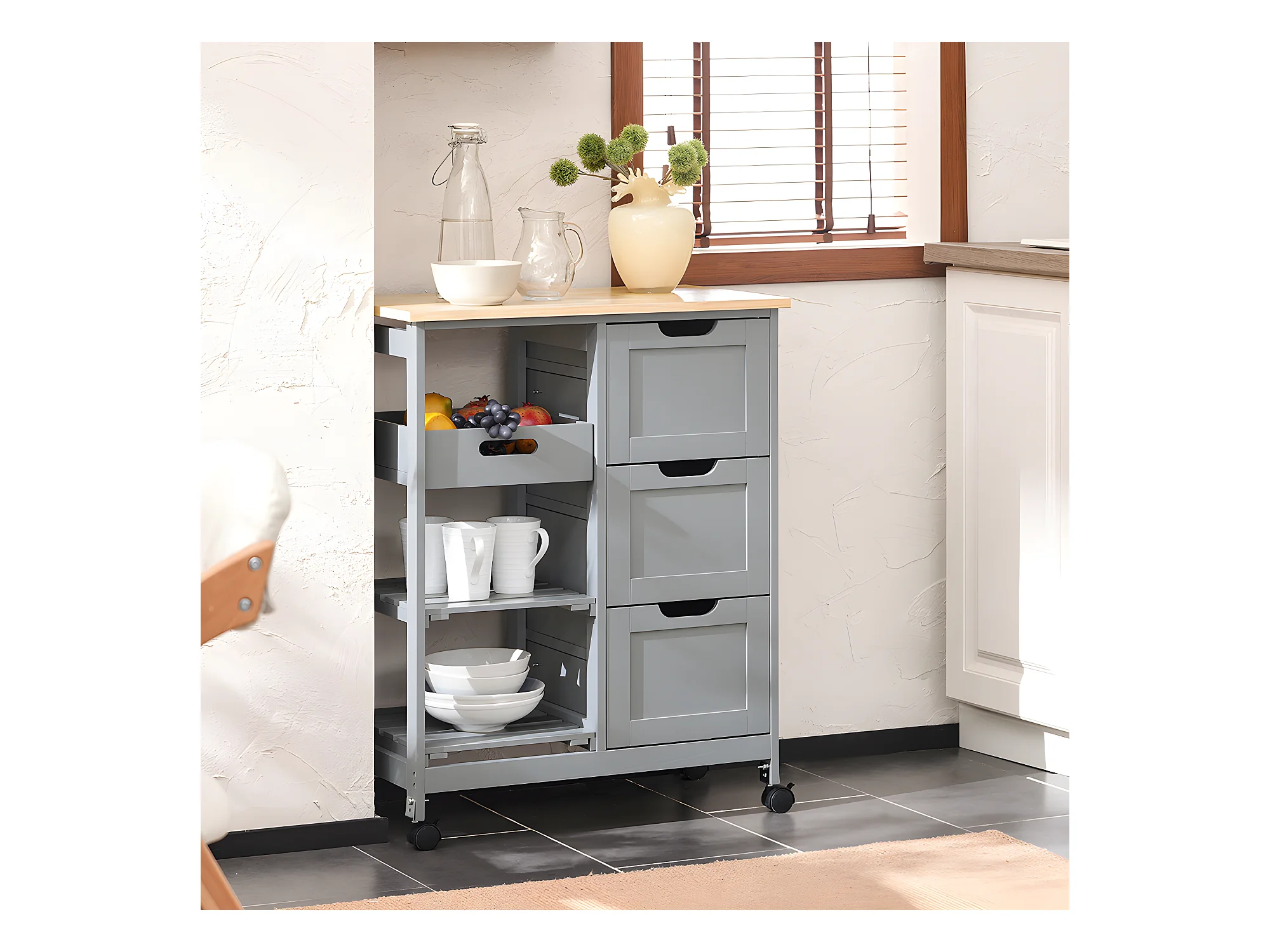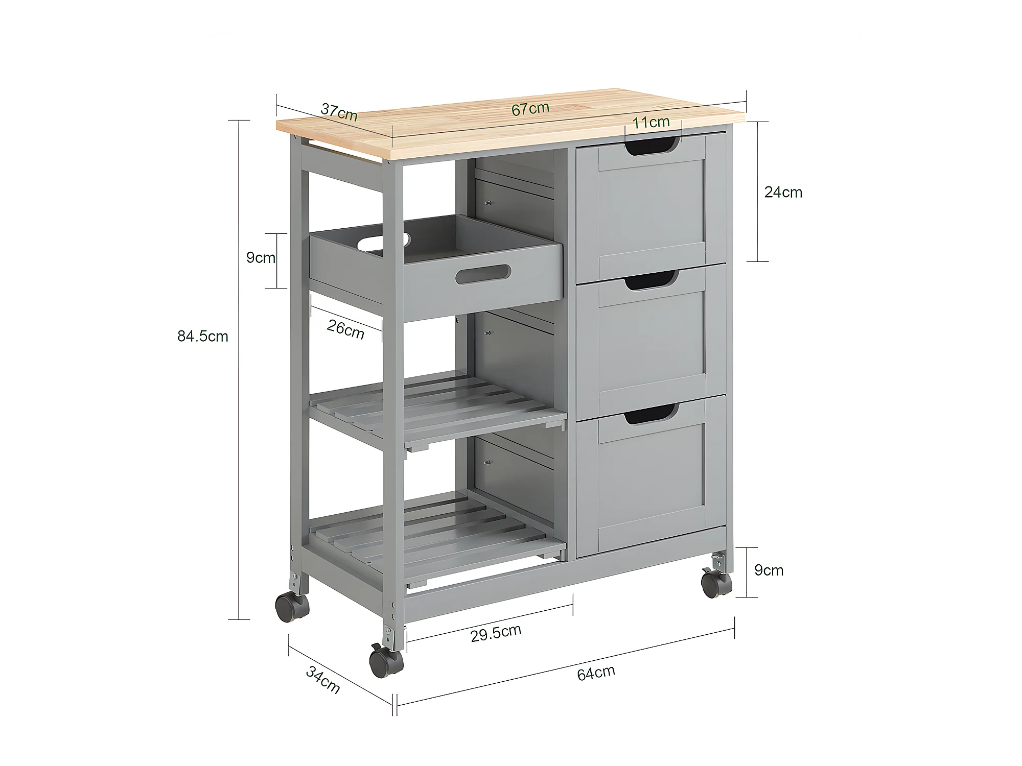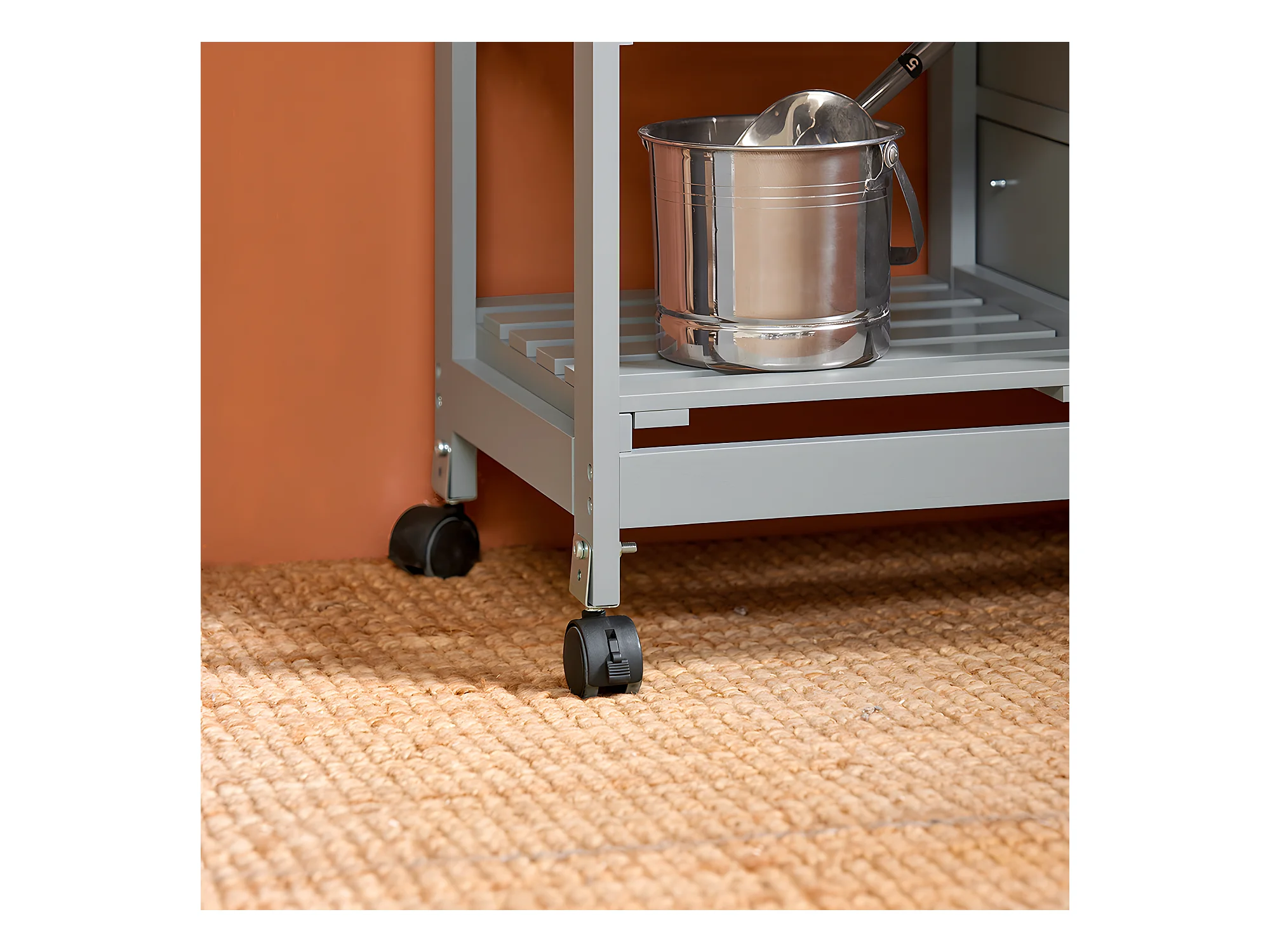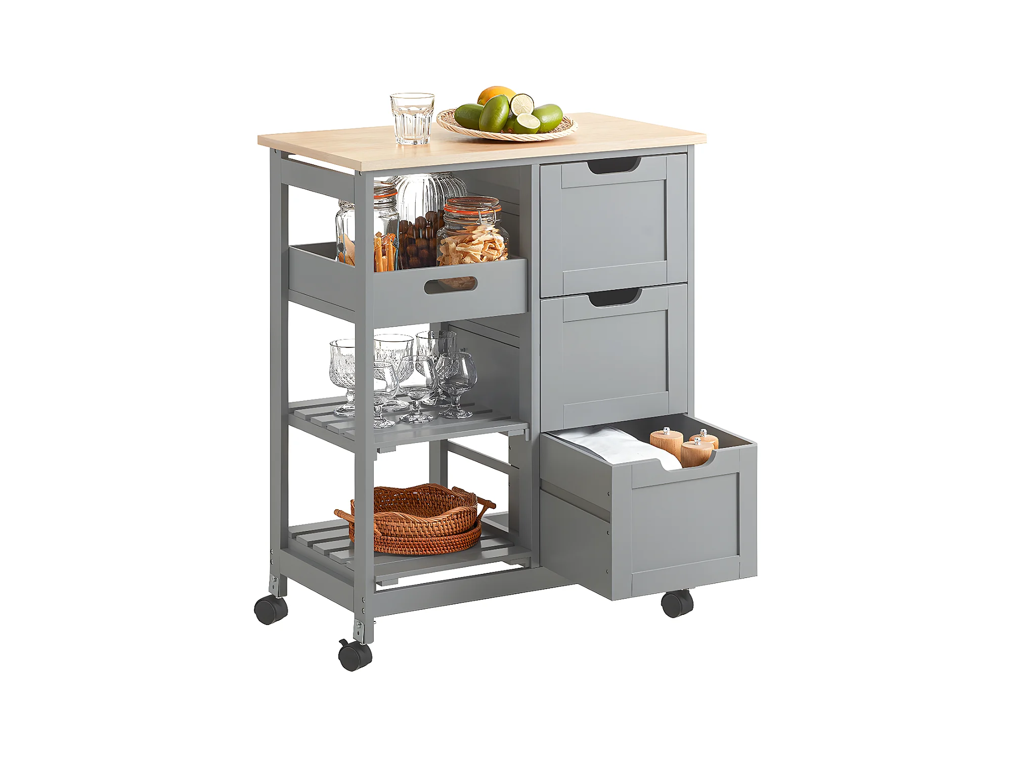 Carrinho de Cozinha Taimi com 3 Cestos Deslizantes e Rodas – Prático e Elegante em Cinza Claro
