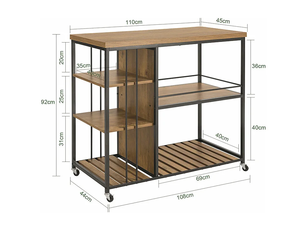 SoBuy armário de cozinha, carrinho de cozinha, carrinho de cozinha com rodas SVW18-F