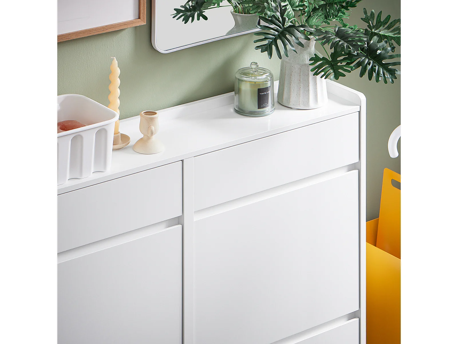 Sapateira com 2 gavetas, 3 compartimentos abertos e 4 portas de batente - 110 x 26 x 100 cm - Aglomerado - Preto