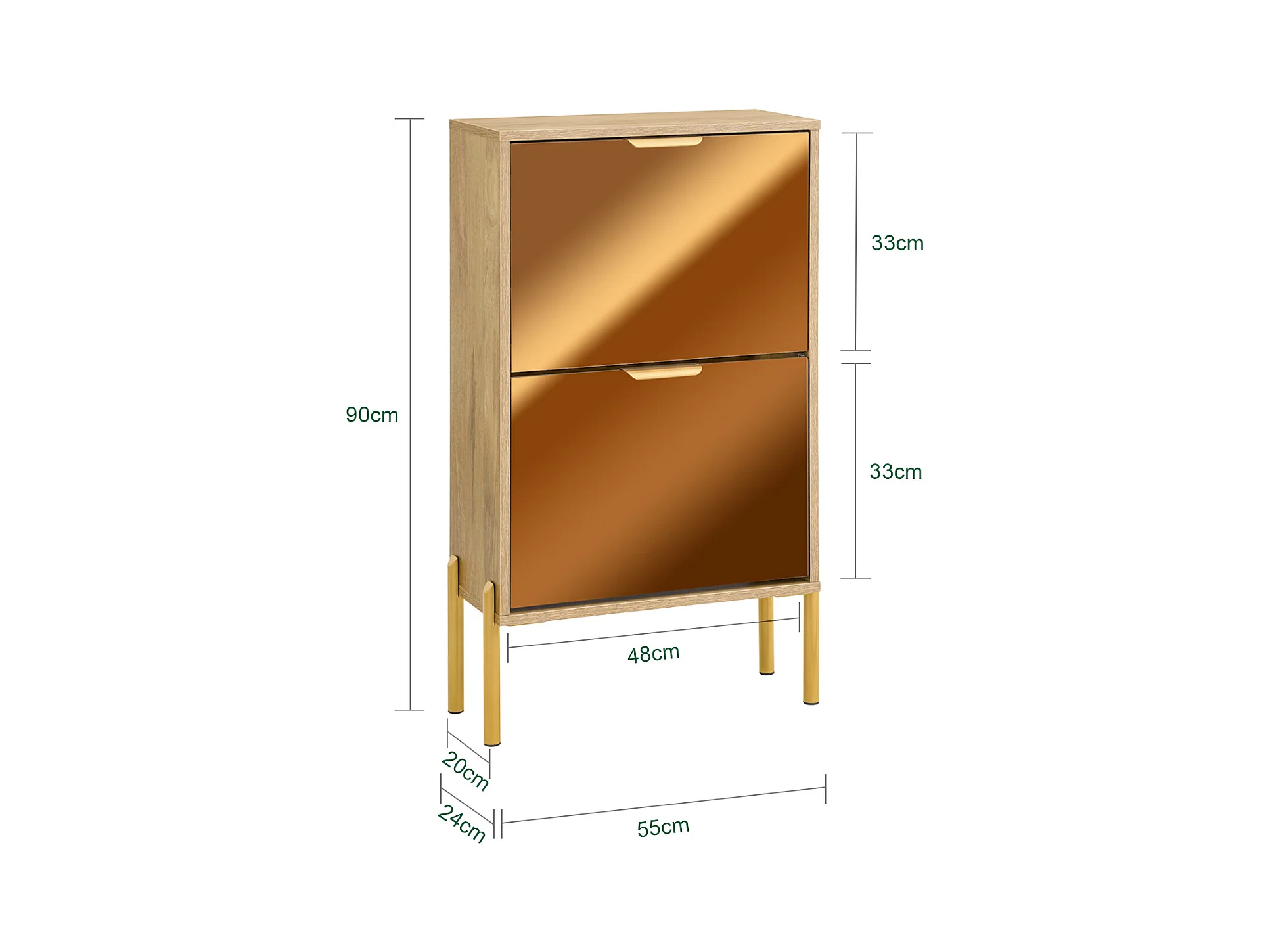 Sapateira SoBuy com 3 portas de vidro Sapateira com 6 prateleiras Sapateira cor dourada 55x24x124cm FSR181-H-G