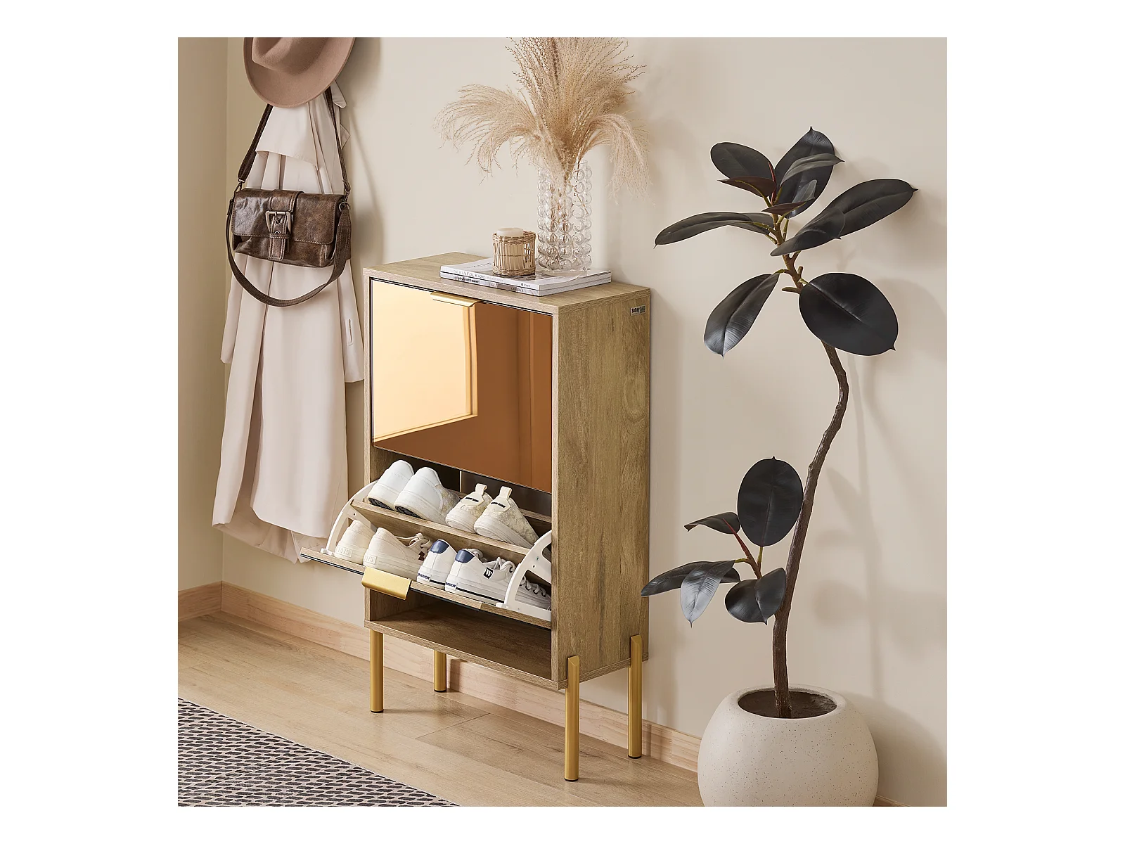 Sapateira 0, Armário multifuncional, Armário de arrumação com prateleiras, Sapateira com duas portas e 6 prateleiras, 55x36h108 cm, Carvalho