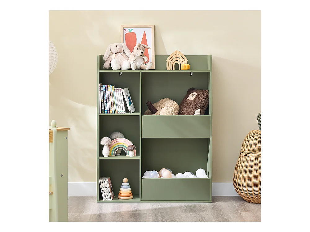 SoBuy Estante Montessori para crianças Estante para brinquedos com 5 compartimentos abertos Verde 80x34x104 cm