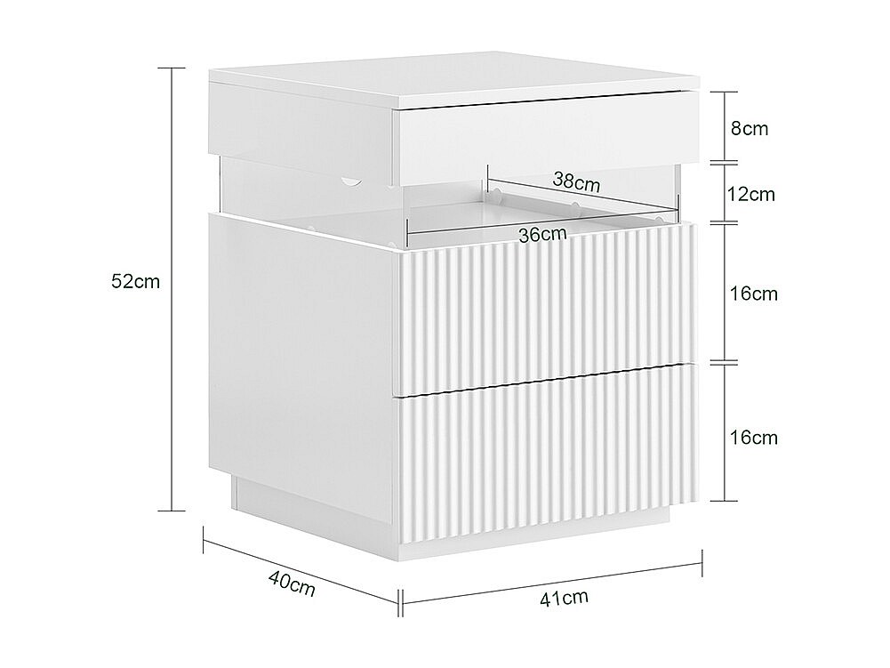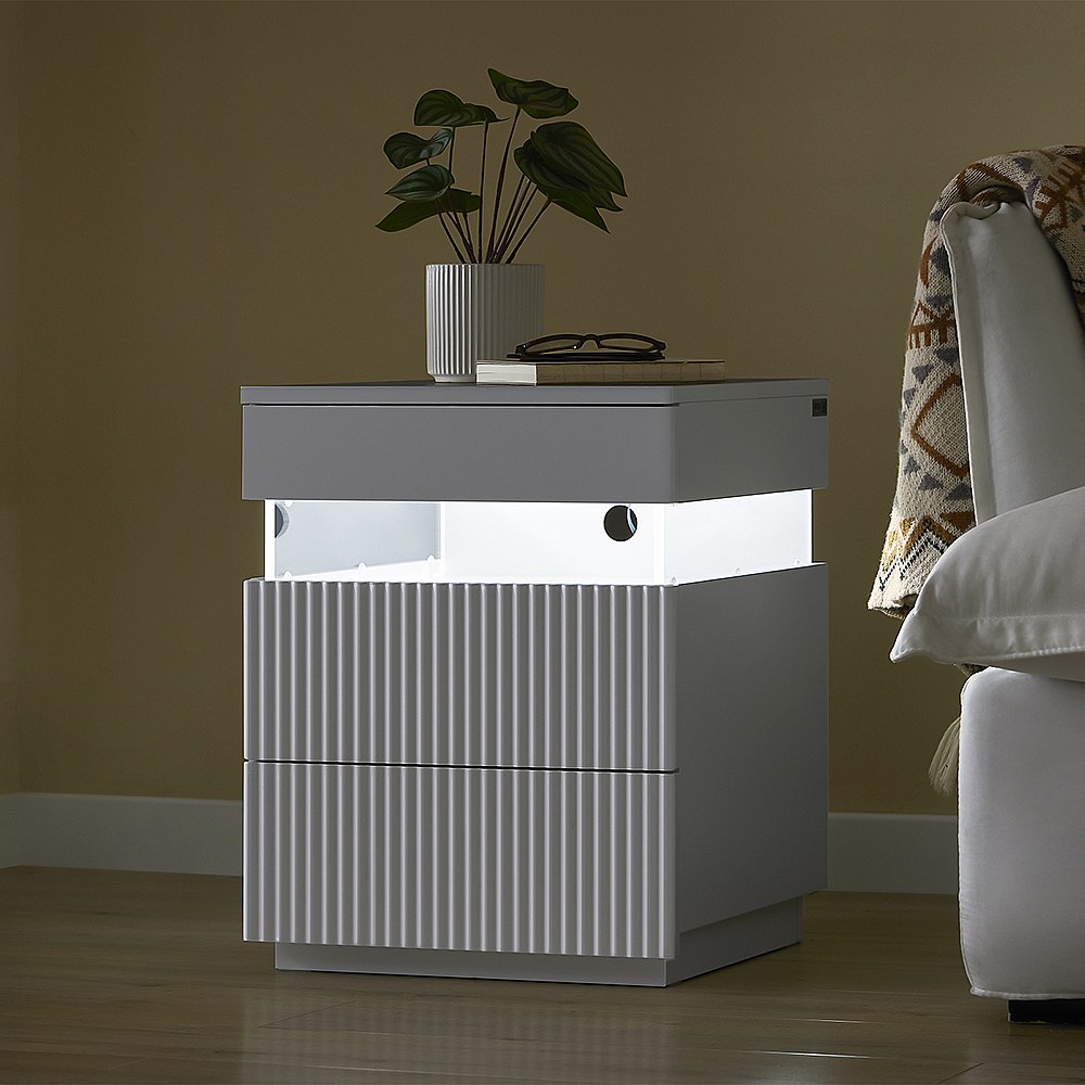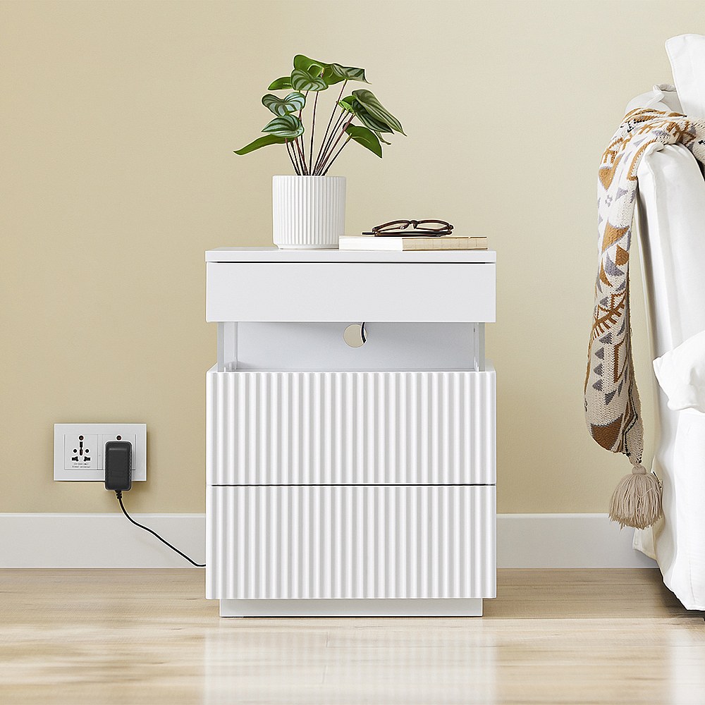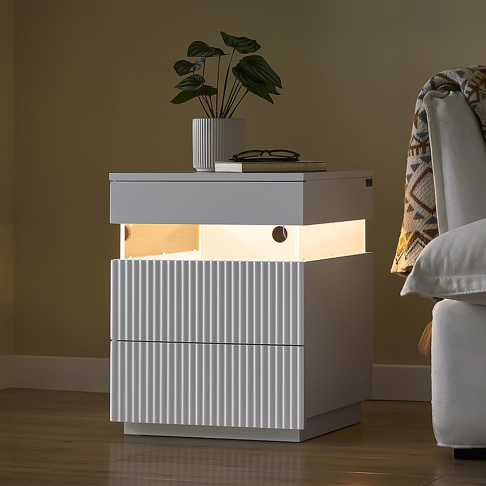 SoBuy Mesa de Cabeceira Moderna 3 Gavetas, Painéis de Acrílico LED, 3 Cores, Branco