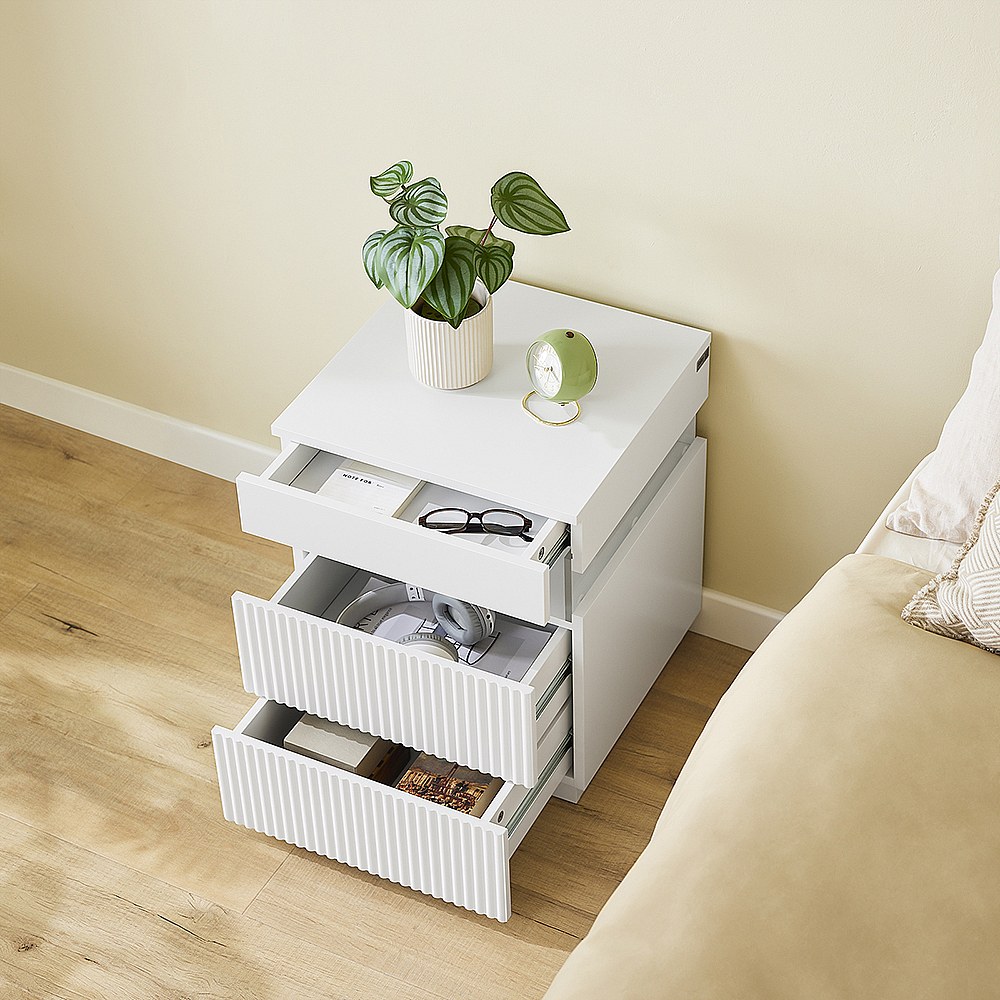 SoBuy Mesa de Cabeceira Moderna com 3 Gavetas e Prateleira Branca 40x40x63cm FBT168-W