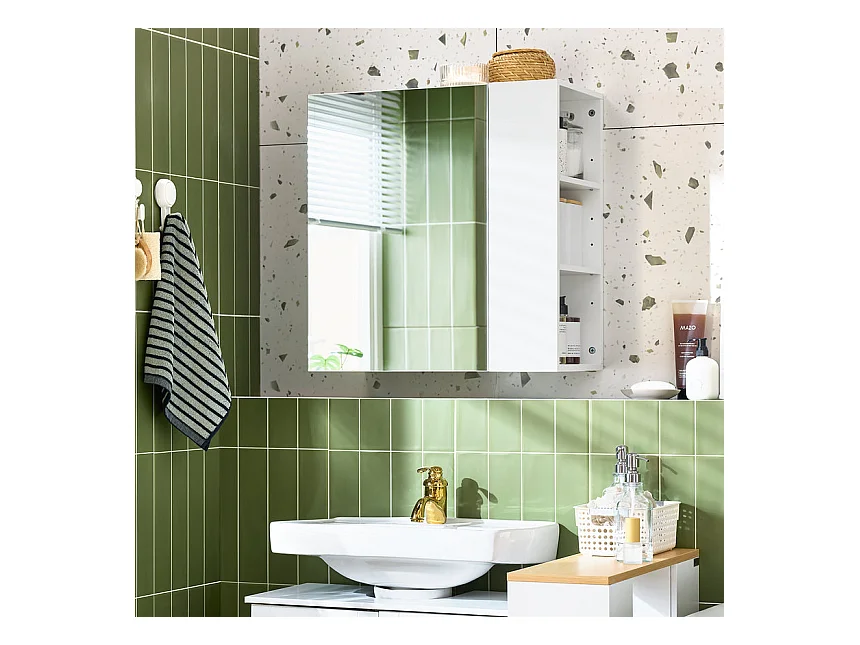 SoBuy Armário de banheiro com espelho, armário de cozinha, Armário de cozinha suspenso BZR144-WN