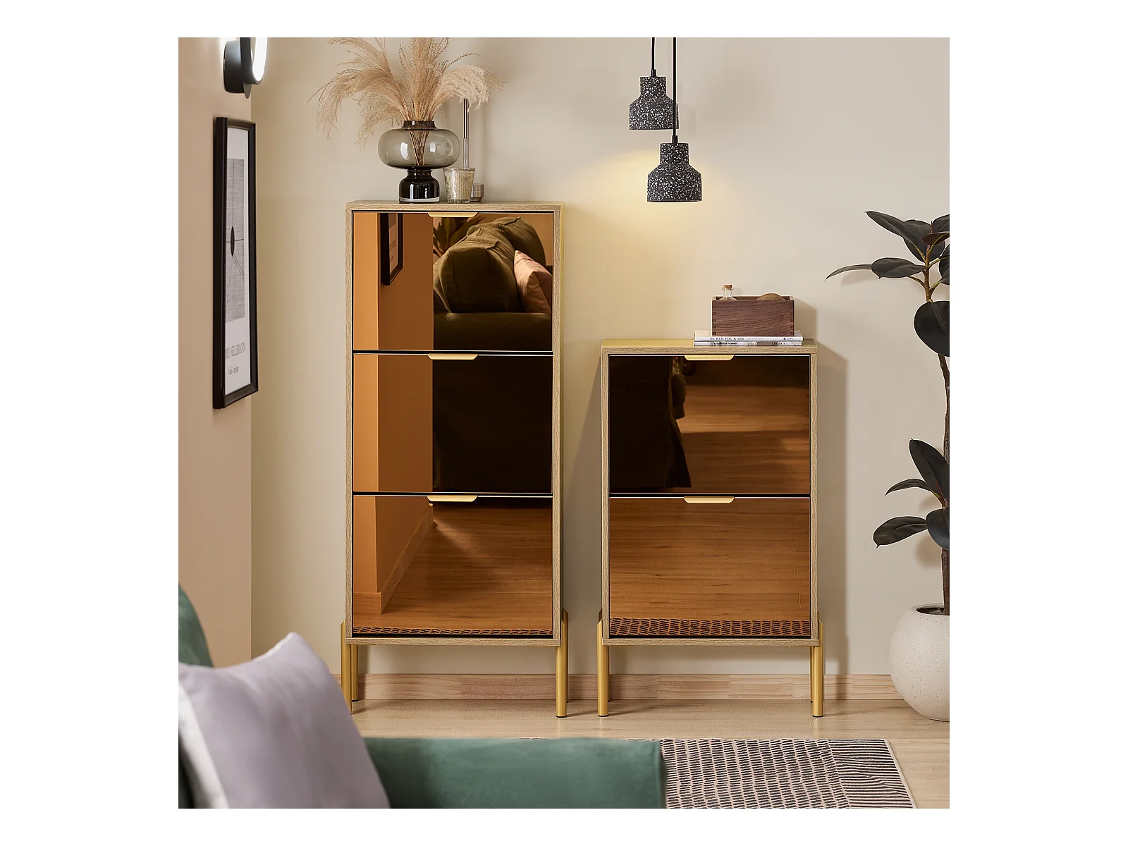 Sapateira SoBuy com 3 portas de vidro Sapateira com 6 prateleiras Sapateira cor dourada 55x24x124cm FSR181-H-G