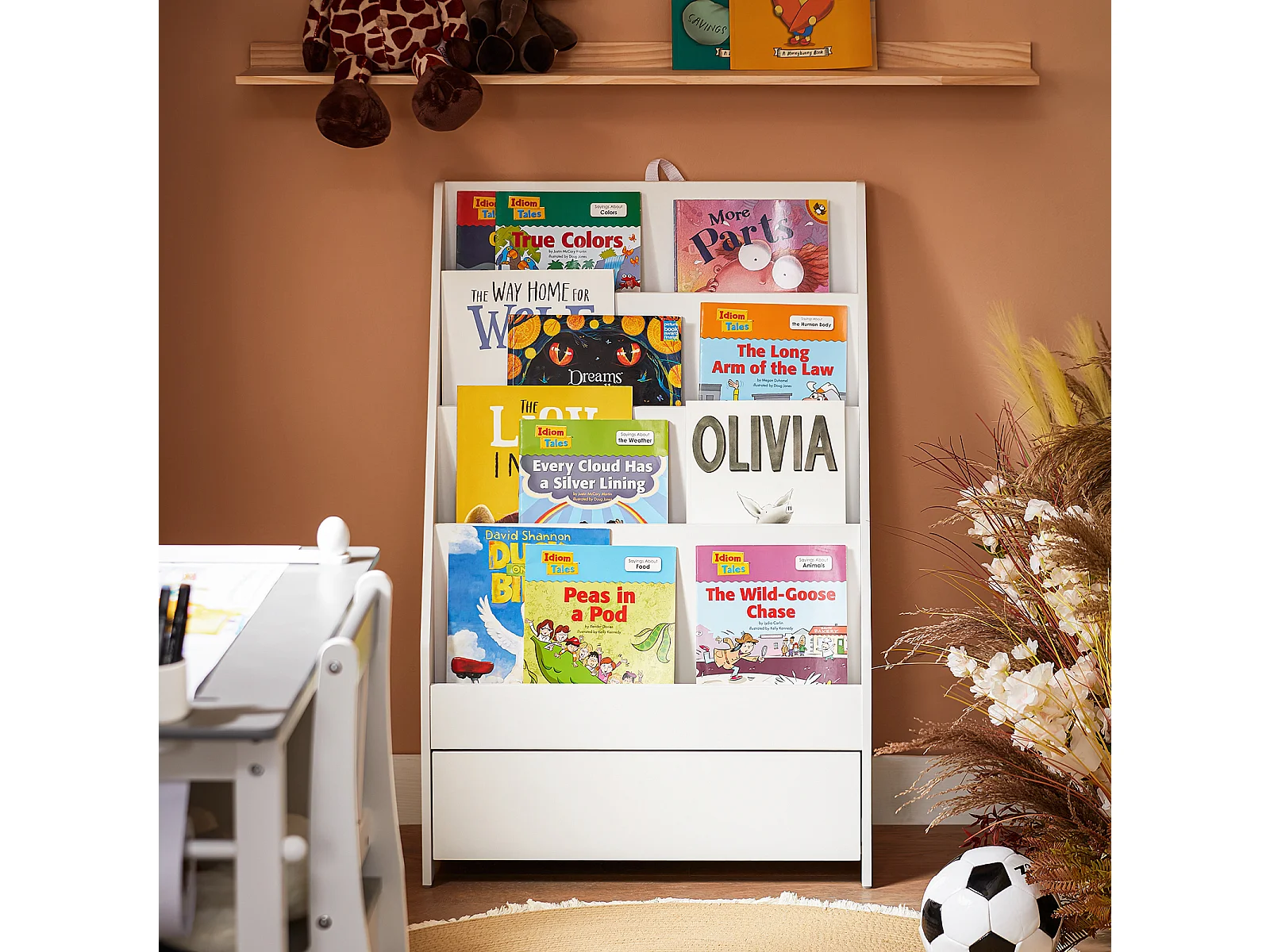 SoBuy, último andar da biblioteca, tronco de brinquedo infantil, Prateleiras de parede para quarto infantil, KMB112-W
