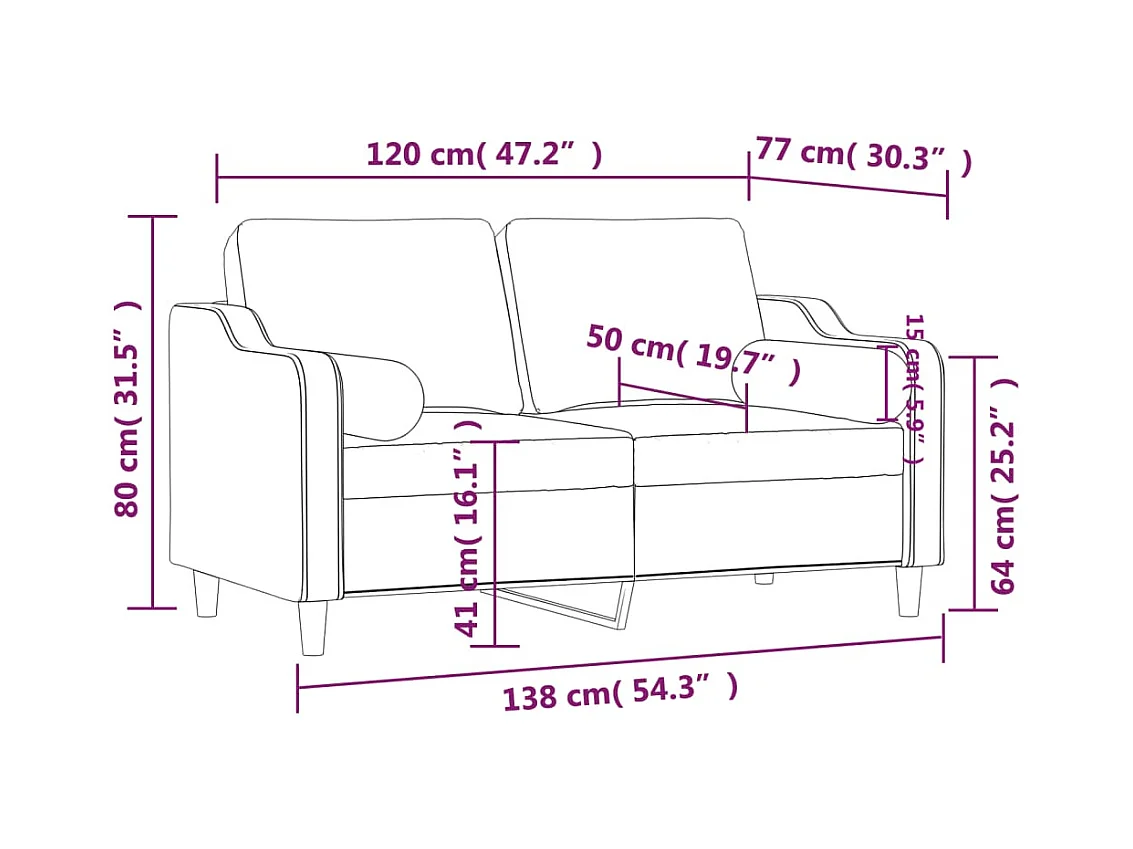 Sofá 2 lug. + almofadas decorativas 120cm tecido vermelho tinto