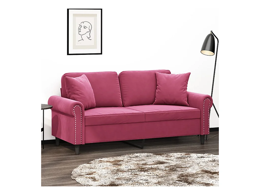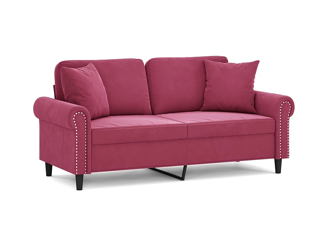 Sofá 2 lug. + almofadas decorativas 120cm veludo vermelho tinto