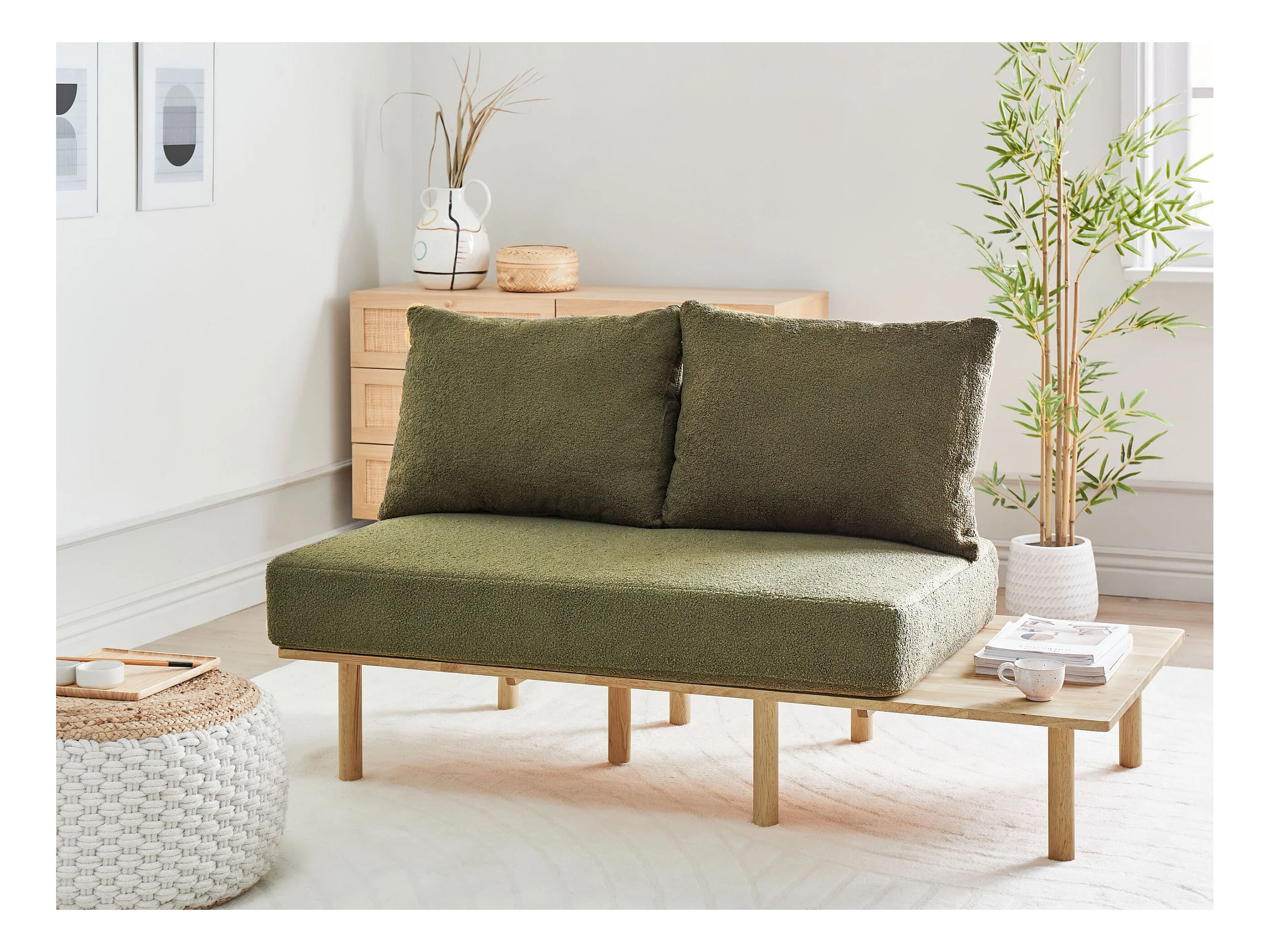 Sofá SALO Bouclé Verde escuro com mesas 2 lugares