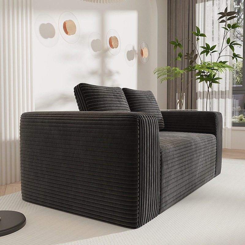 Sofá 2 Lugares de Veludo Cotelê - 58cm Profundidade do Assento - Carga Máx. 250kg - 178x86x70cm - Cinza