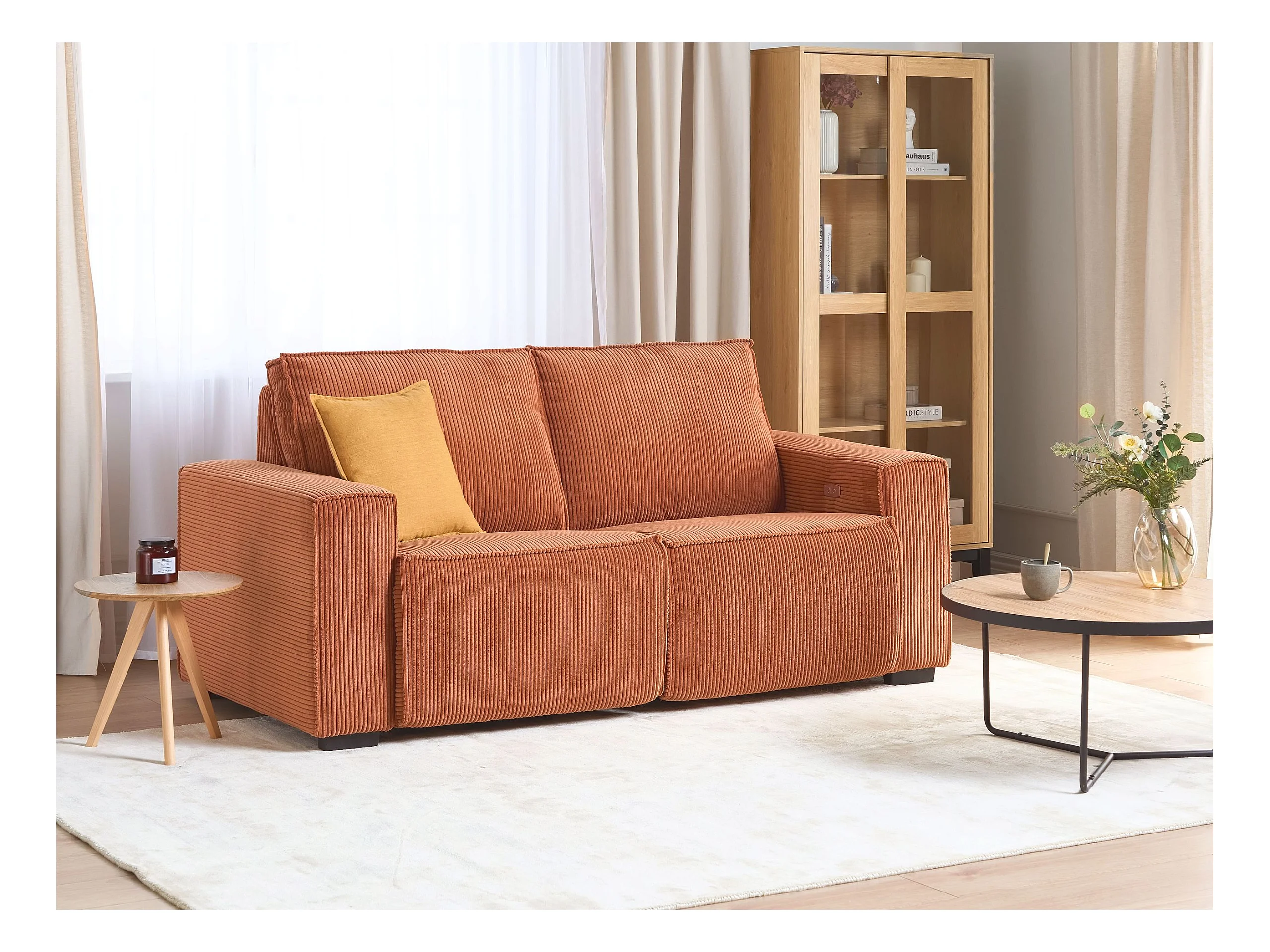 Sofá reclinável elétrico NUKARI Bombazine Laranja 3 lugares
