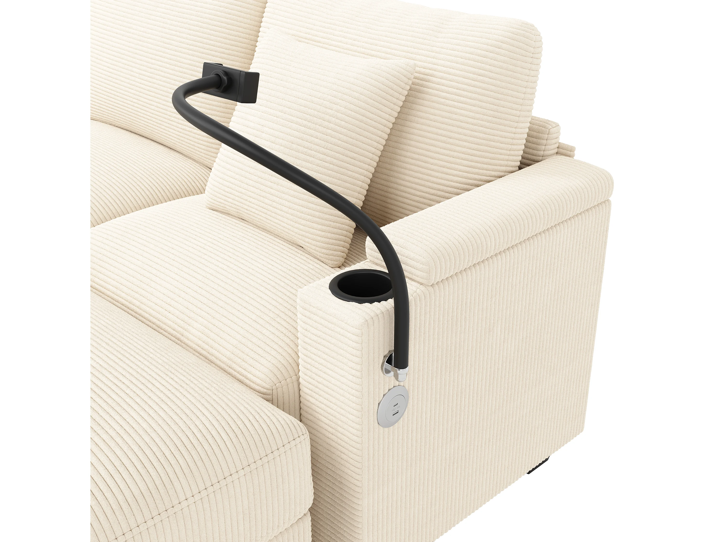 Sofá 4 lugares em forma de U - Veludo canelado - Equipado con suporte para telefone e porta de carregamento USB - Bege