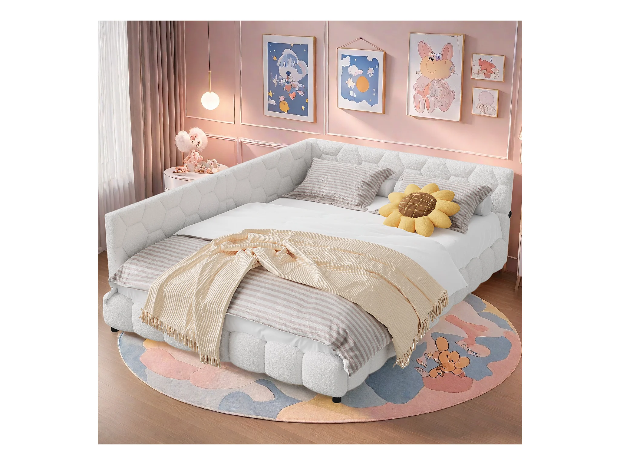 Sofá-cama 140*200cm, luz ambiente de 16 cores, porta USB, branco