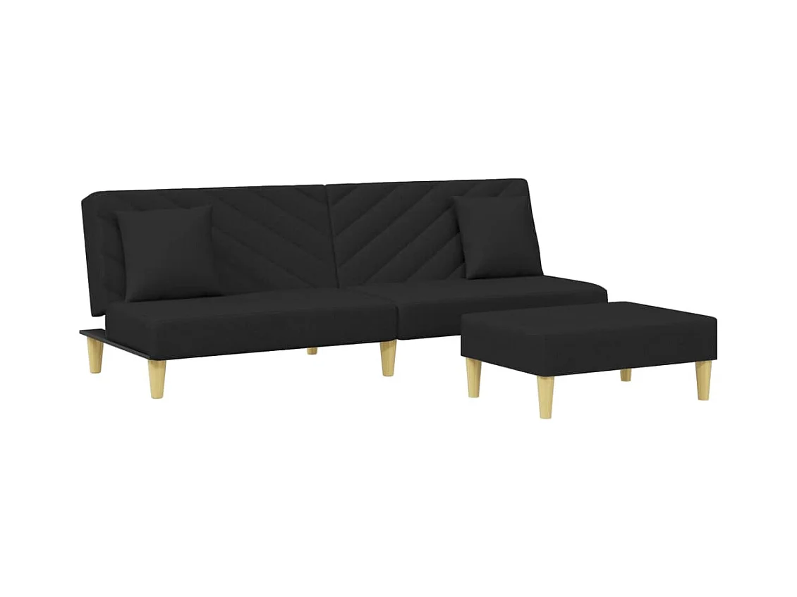 Sofá-cama 2 lugares c/ almofadas e apoio de pés tecido preto