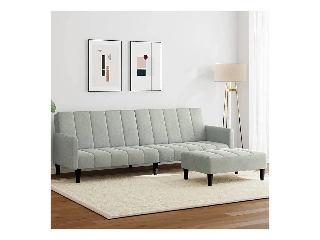 Sofá-cama de 2 lugares c/ apoio de pés tecido cinzento-claro