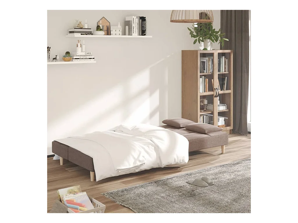 Sofá-cama de 2 lugares tecido cinzento-acastanhado