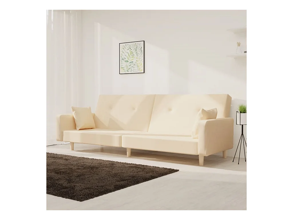 Sofá-cama 2 lugares com duas almofadas tecido cor creme