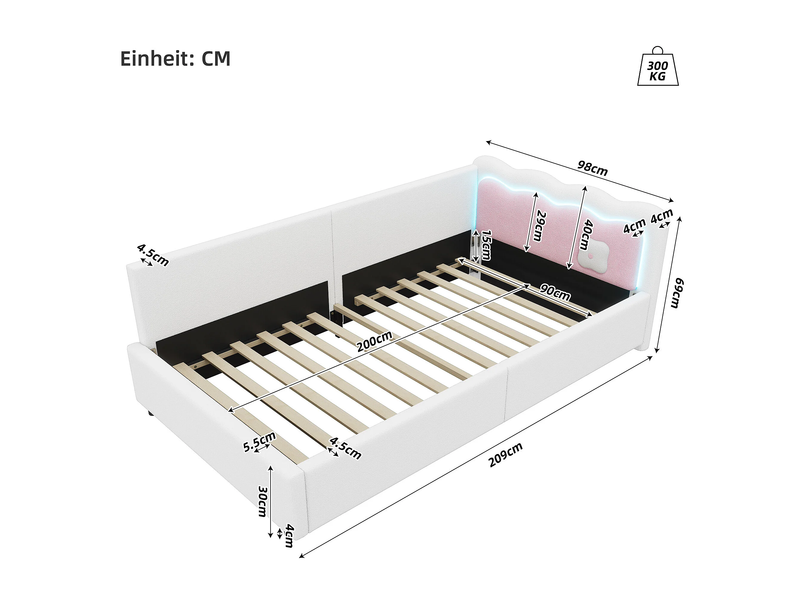 Cama de dia em veludo branco 90 x 200 cm com iluminação LED (sem colchão)