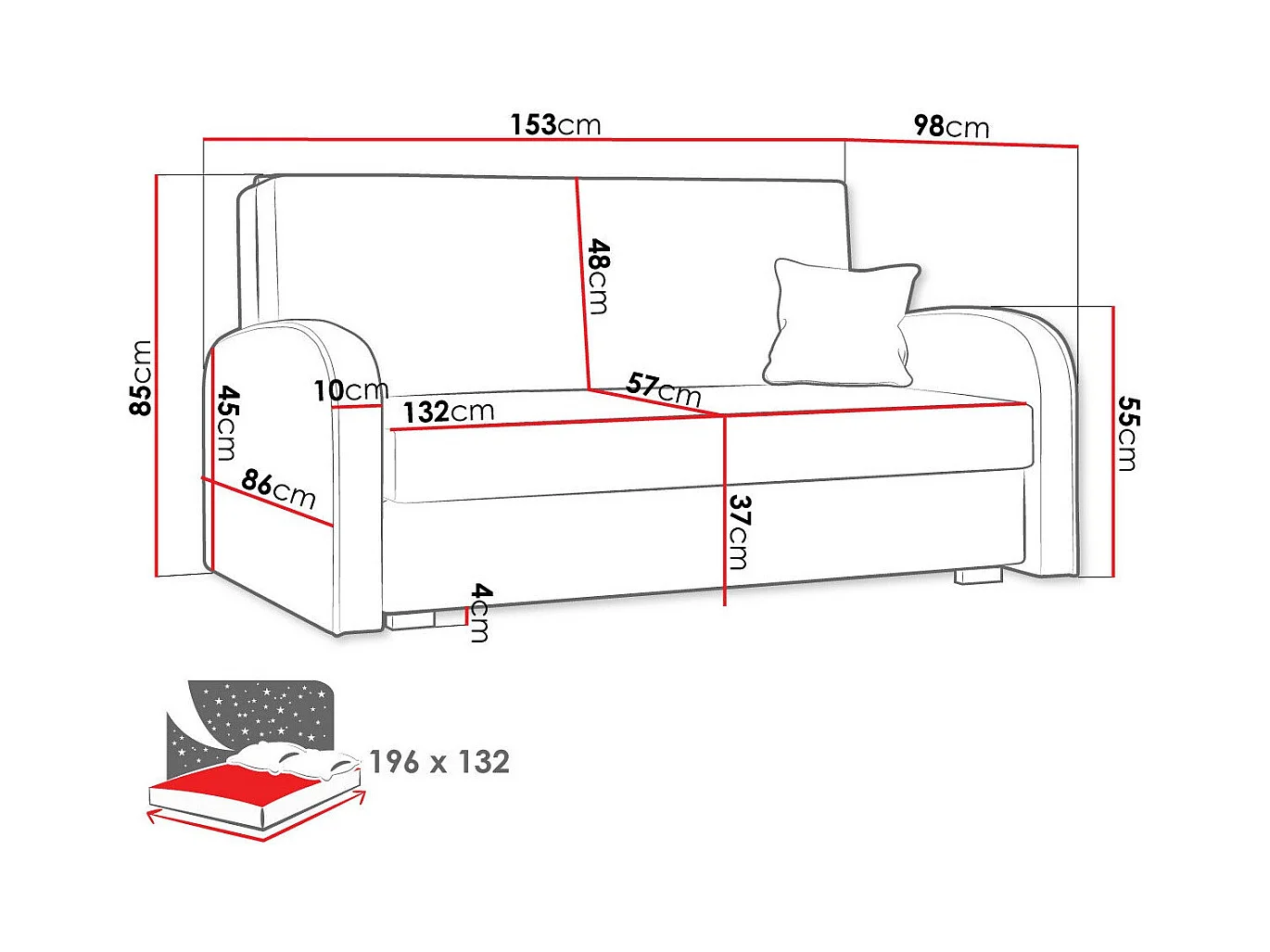 Sofá cama Columbus 136, Cama com arrumação, 9x15x10cm