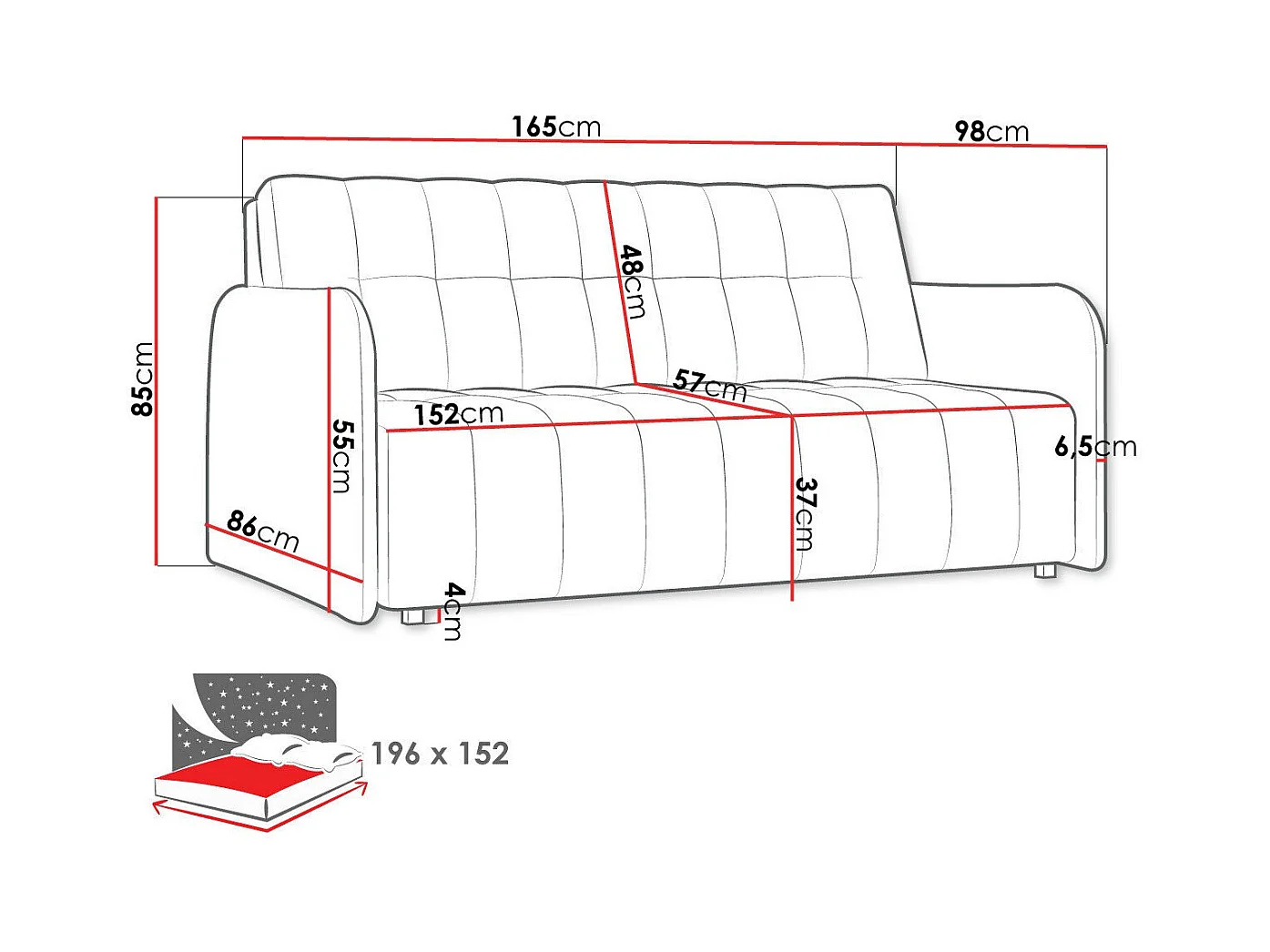 Sofá cama Memphis 136, Cama com arrumação, 10x22x9cm