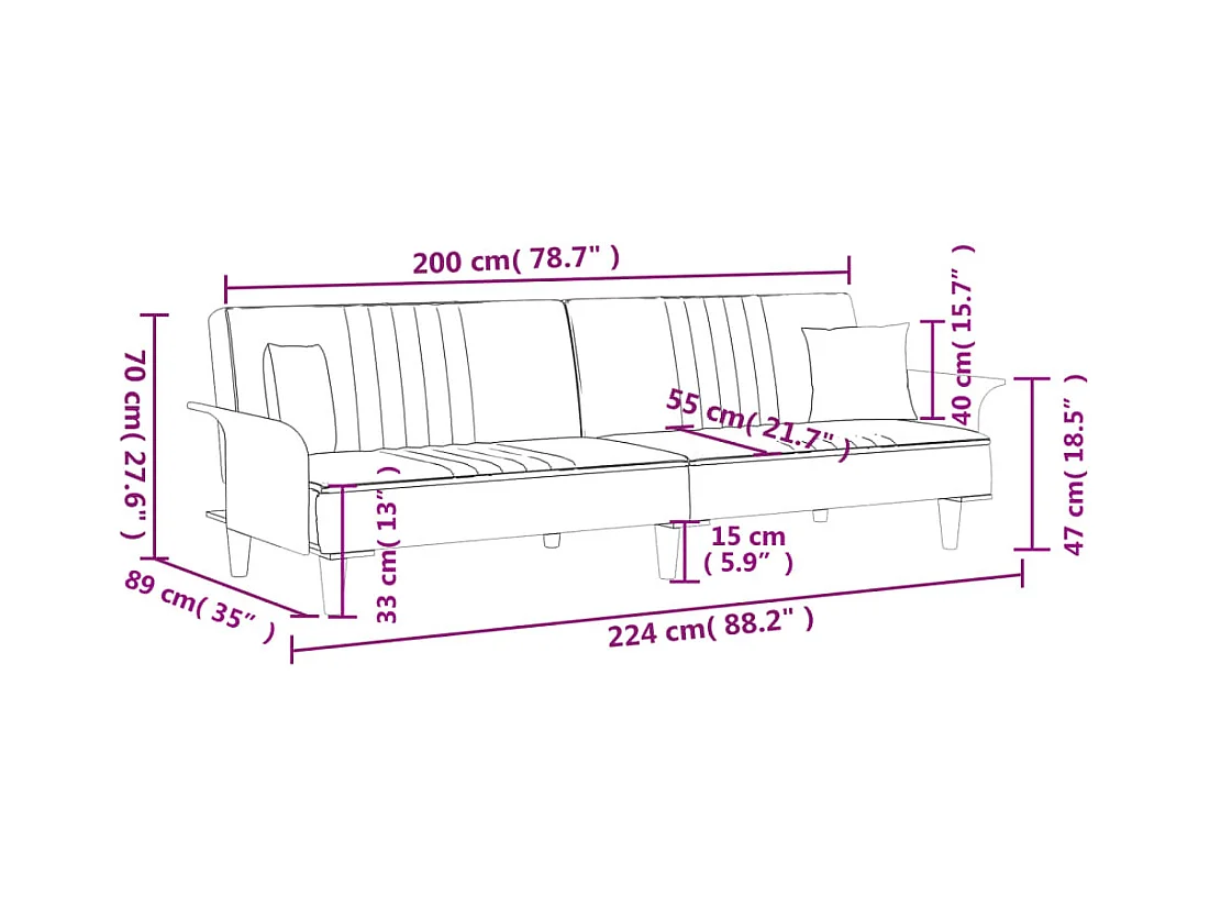 Sofá-cama com suportes para copos veludo cinzento-escuro