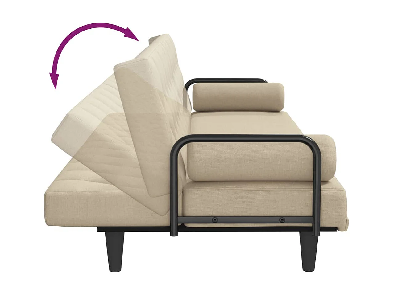 Sofá-cama com apoio de braços tecido cor creme