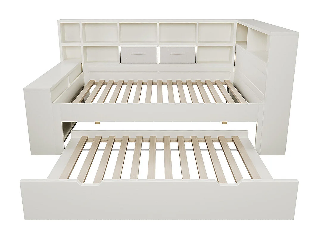 Sofá-cama, com cama extra, prateleira de arrumação em três lados e portas de carregamento USB/Tipo C integradas, branco - 90x190